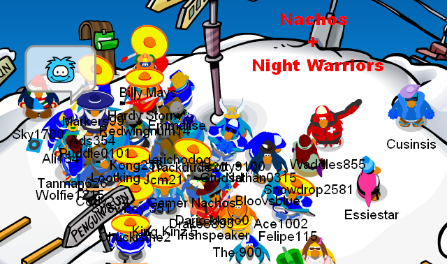 Welcome to the Nachos! We were one of the most powerful and legendary armies in all of Club Penguin. Known for our fun and enjoyable atmosphere, we're always having a good time! Due to Club Penguin shutting down, the army is mostly inactive. However, our older members tend to keep in touch using discord. You can join using the following link.