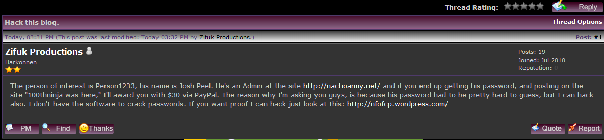 What did person do? Or the nachos? If anyone could tell me the site so I could go on there and see what the hell is going on, it will be appreciated.