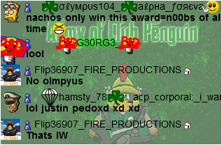 Welcome to the Nachos! We were one of the most powerful and legendary armies in all of Club Penguin. Known for our fun and enjoyable atmosphere, we're always having a good time! Due to Club Penguin shutting down, the army is mostly inactive. However, our older members tend to keep in touch using discord. You can join using the following link.