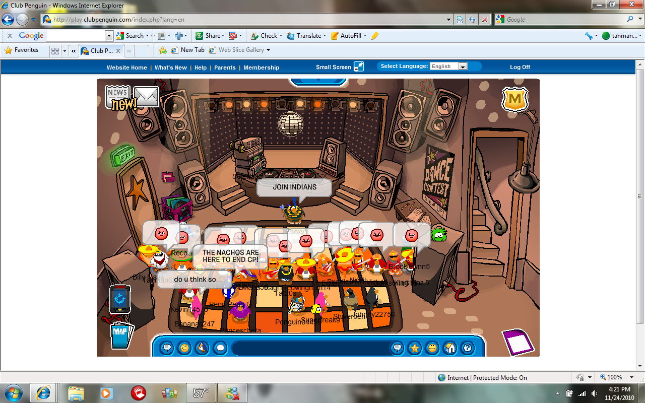Welcome to the Nachos! We were one of the most powerful and legendary armies in all of Club Penguin. Known for our fun and enjoyable atmosphere, we're always having a good time! Due to Club Penguin shutting down, the army is mostly inactive. However, our older members tend to keep in touch using discord. You can join using the following link.