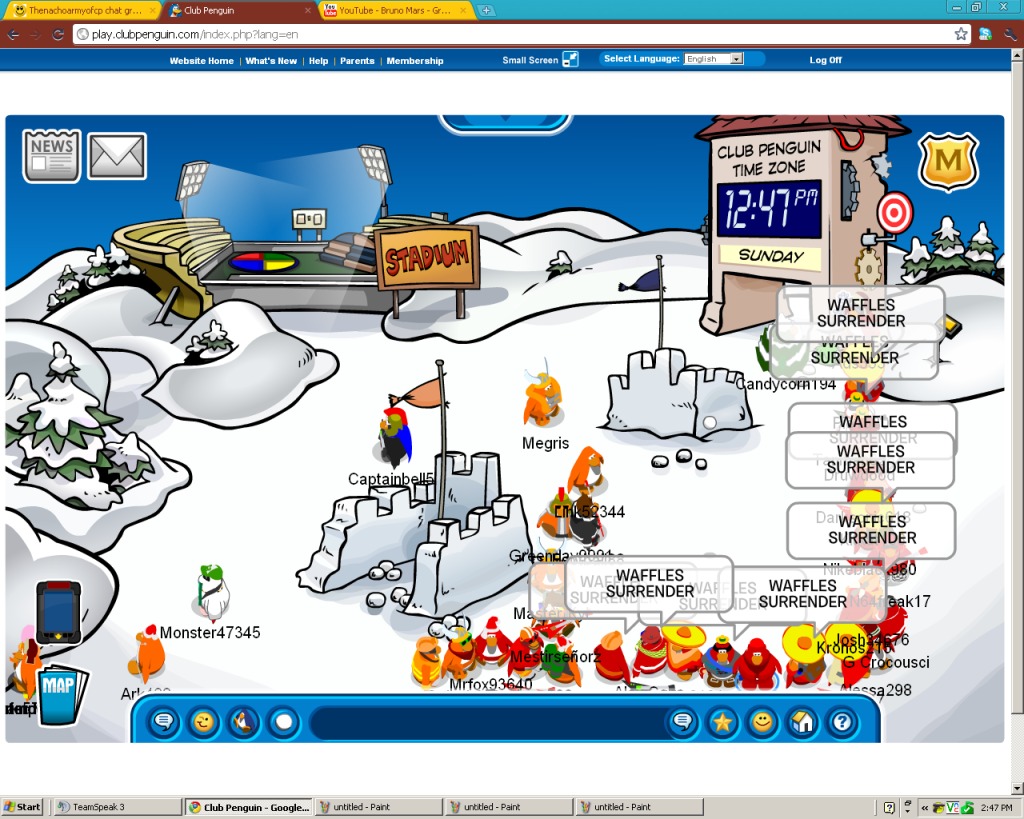 -WW and Nachos battled it out for a while with various emotes and word bombs/charges until WW retreated to the Snow Forts.
