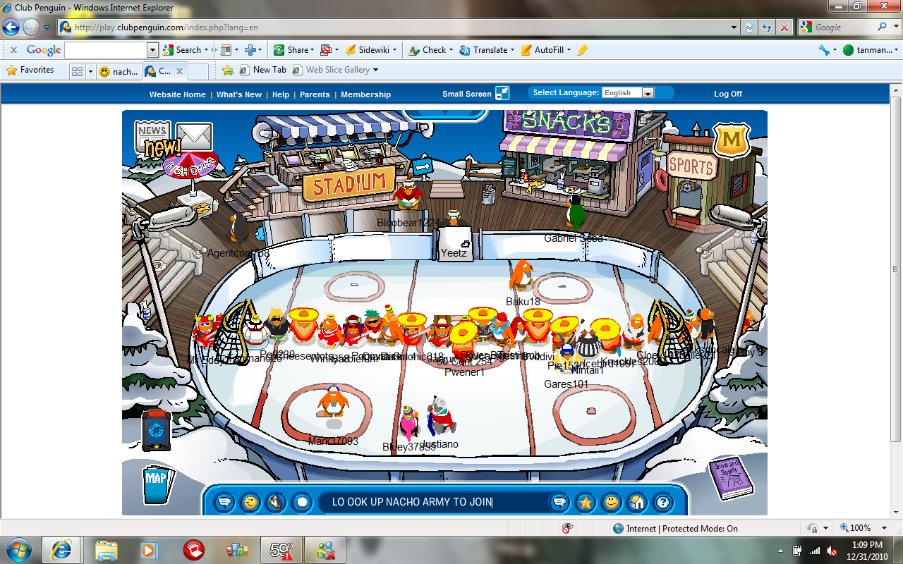 Welcome to the Nachos! We were one of the most powerful and legendary armies in all of Club Penguin. Known for our fun and enjoyable atmosphere, we're always having a good time! Due to Club Penguin shutting down, the army is mostly inactive. However, our older members tend to keep in touch using discord. You can join using the following link.
