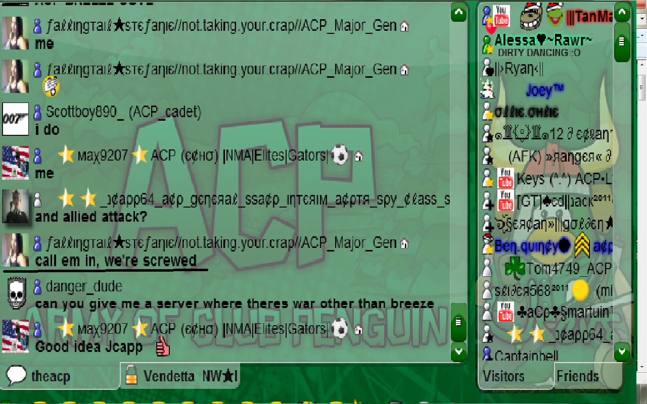 Guys this is a CLUBPENGUIN army. Not a hangout on chat. If we tell you to go on CP you go.