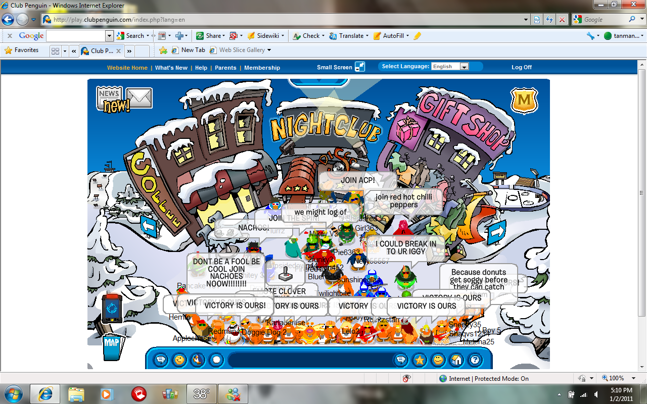 By 4:45 PM EST, however, we finally got into the rhythm, and defeated the Army of Club Penguin at the dock. The battle raged on for a few hours, and the dedication of the Nacho Army allowed us to have a successful campaign on Fjord. I am not exactly sure of the status of Fjord right now, because we defended it from the armies we needed to, but GT was not there. I will update this post with a lot more later tonight, when more pieces of the puzzle come together.