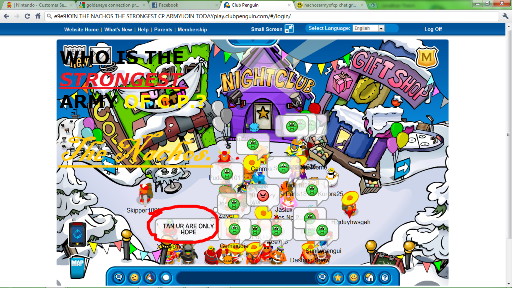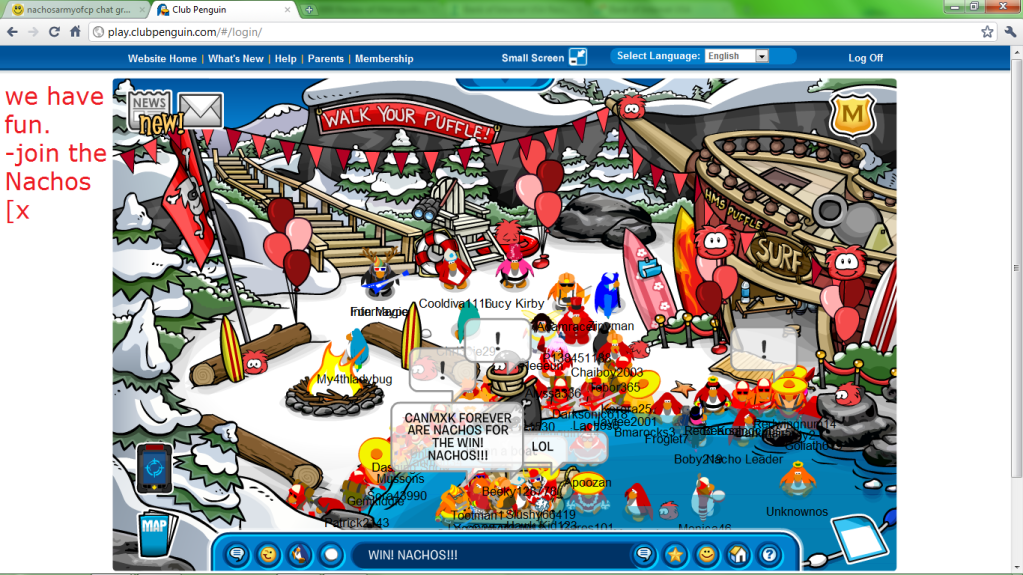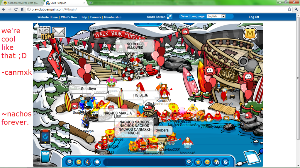 Welcome to the Nachos! We were one of the most powerful and legendary armies in all of Club Penguin. Known for our fun and enjoyable atmosphere, we're always having a good time! Due to Club Penguin shutting down, the army is mostly inactive. However, our older members tend to keep in touch using discord. You can join using the following link.
