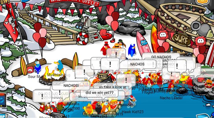 Welcome to the Nachos! We were one of the most powerful and legendary armies in all of Club Penguin. Known for our fun and enjoyable atmosphere, we're always having a good time! Due to Club Penguin shutting down, the army is mostly inactive. However, our older members tend to keep in touch using discord. You can join using the following link.
