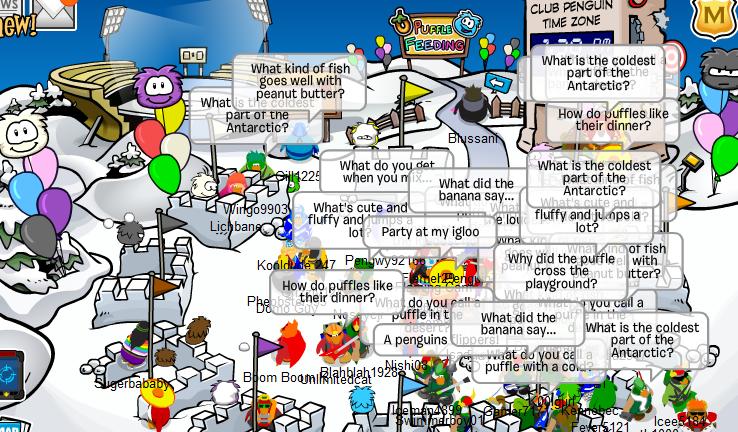 Rooms captured: Town, Dock, Beach, Ice Berg, Cove, Forest, Pizza Parlor, Ice Rink, Snow Fort, Plaza.