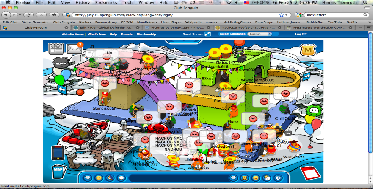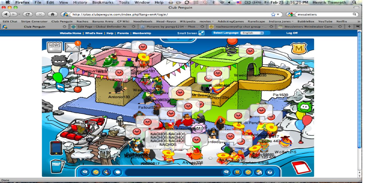 Welcome to the Nachos! We were one of the most powerful and legendary armies in all of Club Penguin. Known for our fun and enjoyable atmosphere, we're always having a good time! Due to Club Penguin shutting down, the army is mostly inactive. However, our older members tend to keep in touch using discord. You can join using the following link.
