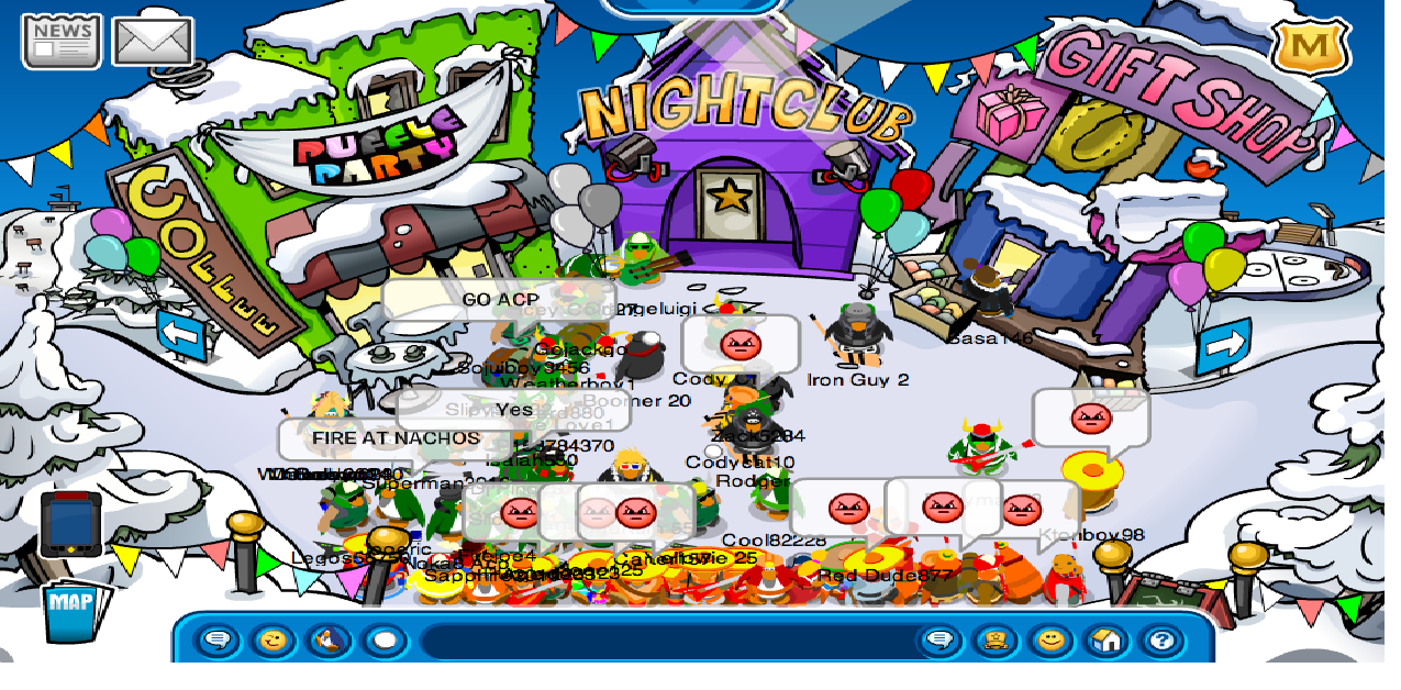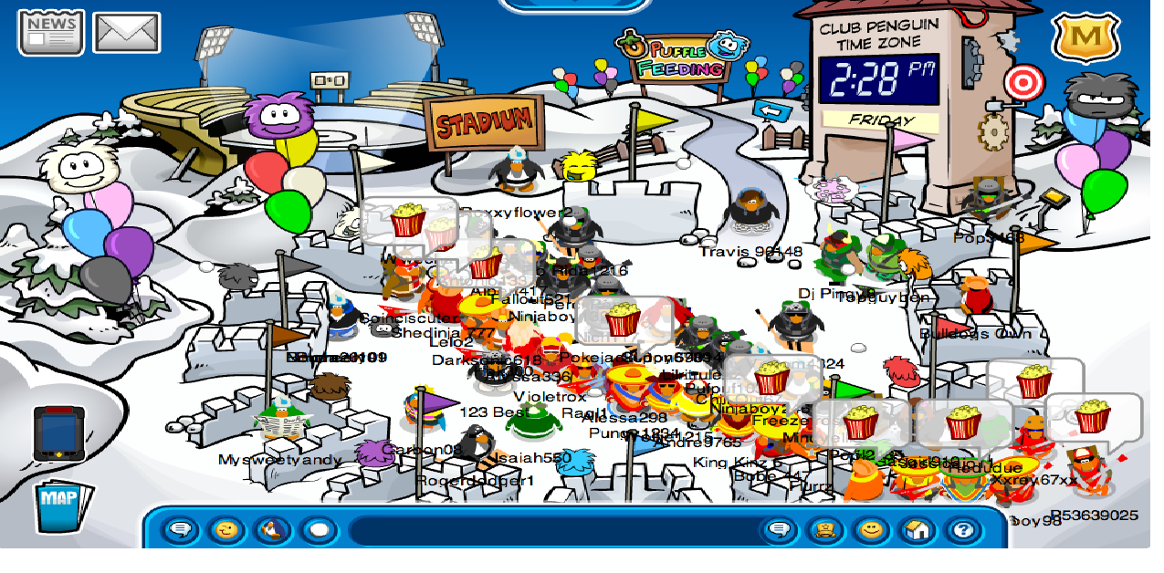 Yesterday even with the war over we logged onto Summit to fight anyway just for fun.. We did great at the beginning. We had about 35 troops and were beating DW in nearly every room we fought (Town,Snowforts,Dock,Beach,Pool). Then towards the end there was a big confusion on chat and I had to go Be Right Back to talk to Mchappy. We then dropped to about 15 soldiers while DW had around 20-25. Good fight ACP and DW it was fun.