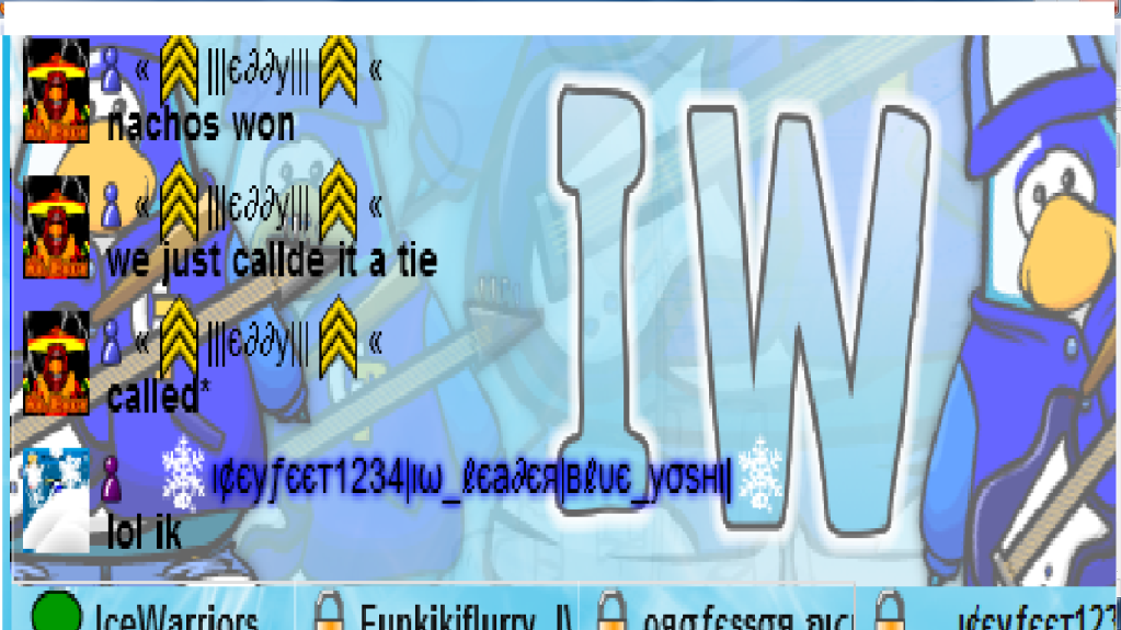 Hola Nachos!  Today we faced off against the Ice Warriors in a practice battle.  It was fun and great battle like always when we battle the Ice Warriors.  They always put up a great fight and a tough challenge for us.  Today, the IW had the edge in size for the majority of the battle.  At times our size would increase over theirs.  With tactics, ours were great as always.  We kept constantly attacking the IW while they liked to hug the bottom of the chat bar for the majority of the battle.  The IW would at times have an overpowering charge against us, but we would soon recover to make them regroup back to their beloved chat bar.