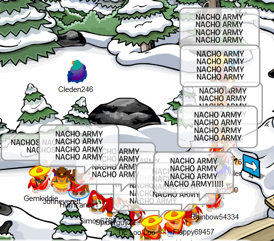 Welcome to the Nachos! We were one of the most powerful and legendary armies in all of Club Penguin. Known for our fun and enjoyable atmosphere, we're always having a good time! Due to Club Penguin shutting down, the army is mostly inactive. However, our older members tend to keep in touch using discord. You can join using the following link.