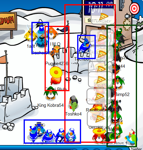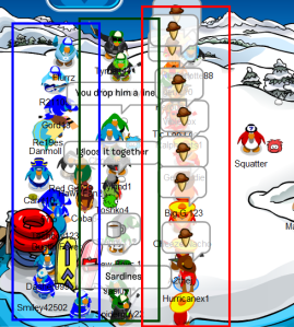 Red – Nachos , Dark Blue – Ice Warriors , Dark Green – CP Crew