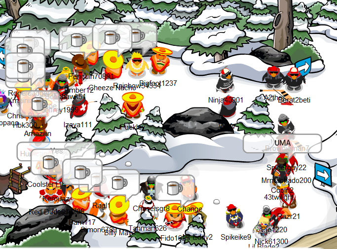 At the beginning of the battle, it didn’t look so good for us.  We had around 15 Nachos, which only averaged about what the UMA had in the beginning.  However, we never lost hoped.  We were still determined that we could improve.  And sure enough, we did!  After confusing the UMA by charging from the Town through Snow Forts into the Plaza we gained our size to where it should be.