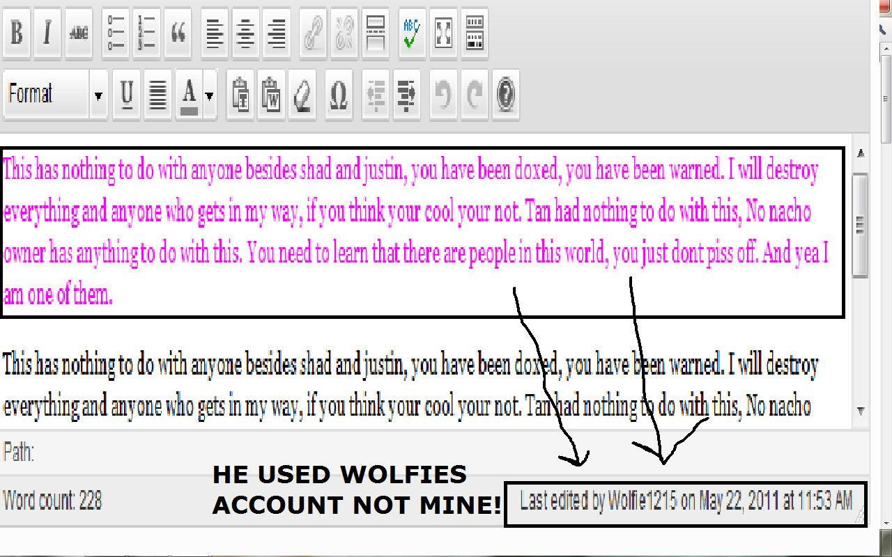 So here’s what happened, Icy got in a fight with Shad and Justin on chat. He texted me demanding I ban them and make him main on Chat and I said no I would not make him main and that I was at Church(this morning). He then said that hes gonna hack the site and did so by getting into Wolfies account.Wolfie told everyone that he gave his pass to Icy so Icy could do something to fix Wolfies comp back when it was broken. Wolfie meant no harm towards the army and is truly sorry. I luckily was able to recover the posts and pages and get everything back to normal.