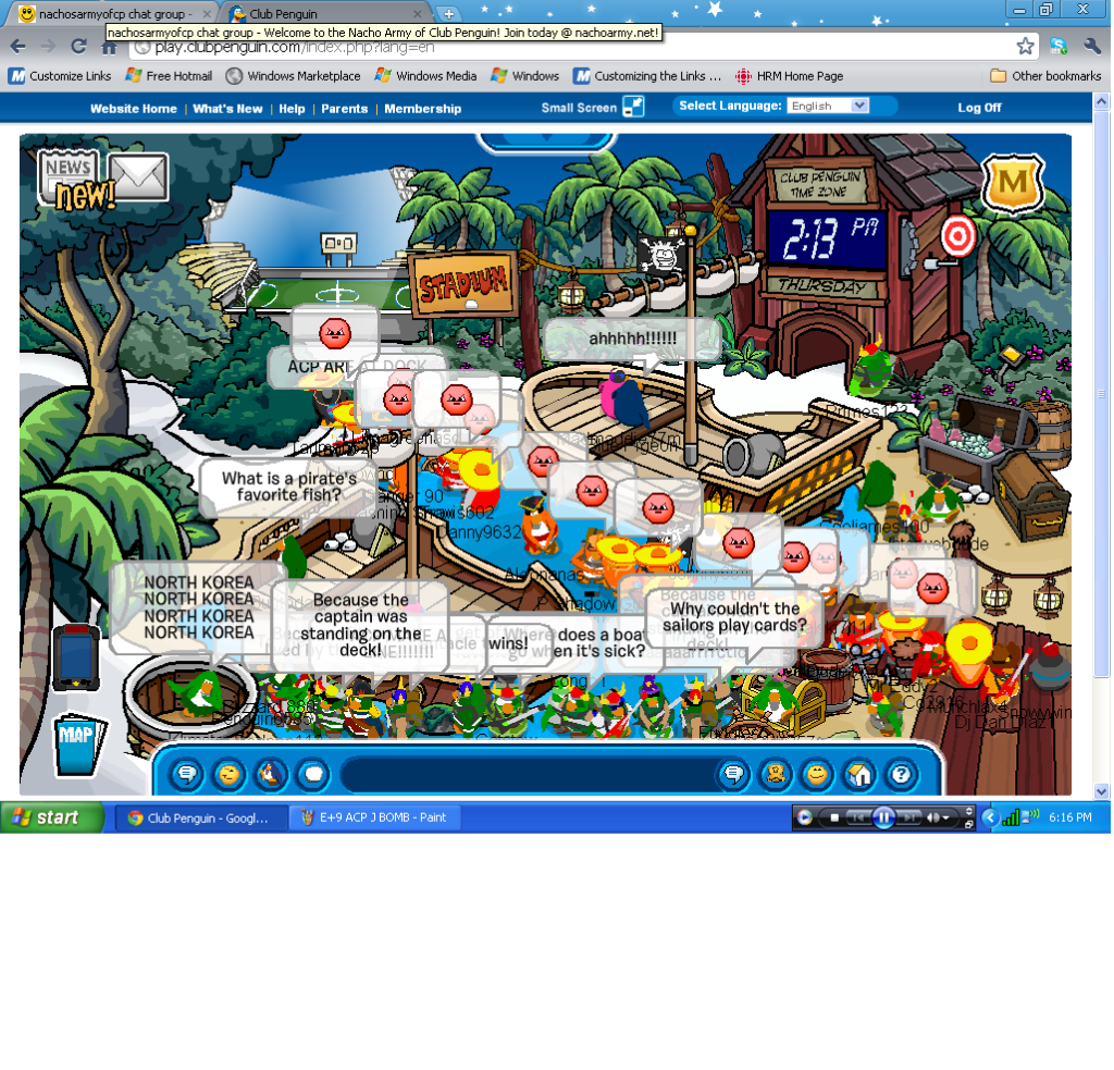 Today I went to ACP chat just like any other day and I come and see people shouting “NACHOS FAIL” “NACHOS SUCK”. I was not to angry and just kind of didn’t say anything. Well I told Joker about this and he came. Immediately after Joker comes we are both guested and banned. Why ACP does this is unknown. I then PC Kenneth to ask why and he basically laughed in my face and banished me. So much for a “Fun war” ;). This angered me so I ordered Nachos onto Breeze where we killed ACP with our brilliant allies the Ninjas,NW,and LT. I would like to thank them for sharing this victory with us and hopefully many more will come in the future :).