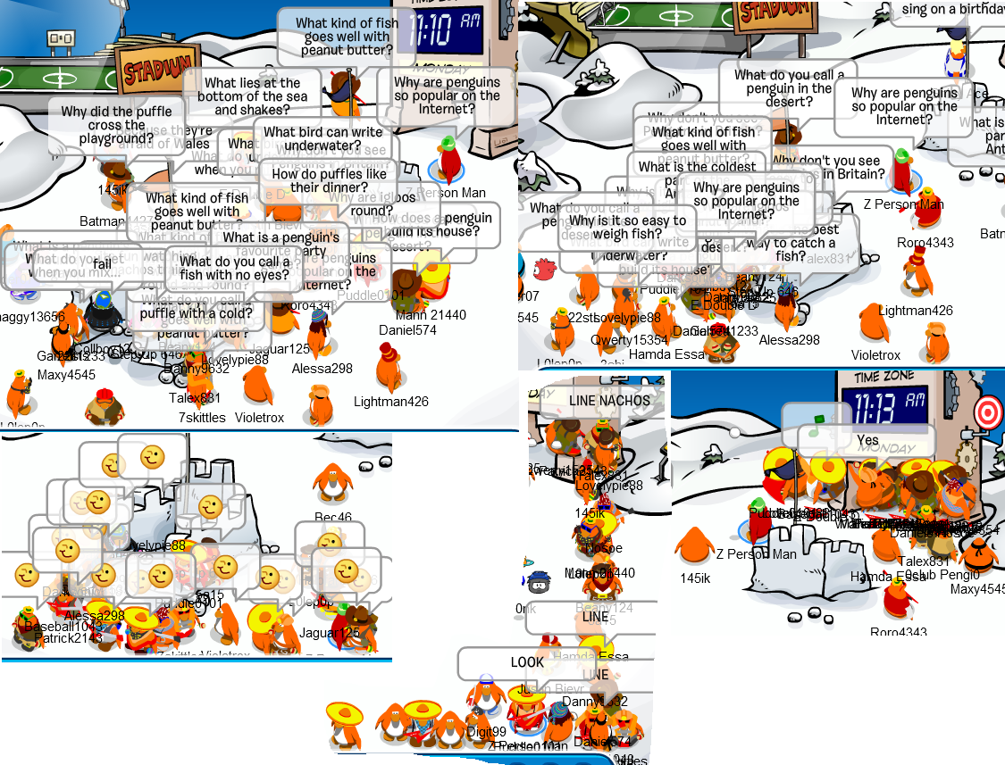 Over the past few days, I’ve seen the workings of the new army, the leaders of the new generation of the Nachos. While each participant in this evaluation week has been efficient in ordering the army around, it’s the tactics that lack originality and creativity. Tactics in Club Penguin warfare are somewhat of an art. Your goal is to position the penguins in the army so that our army appears to have an advantage over the other army. Because we can’t be killed, you can position penguins anywhere you want, which opens up the door to thousands of tactics. I urge the high ranks who have not held a tactic session yet to come up with new ideas for tactics, and have this idea in your head. Leading is simply moving your penguins around to get the advantage.