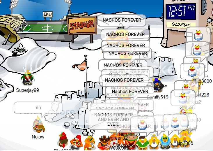 Welcome to the Nachos! We were one of the most powerful and legendary armies in all of Club Penguin. Known for our fun and enjoyable atmosphere, we're always having a good time! Due to Club Penguin shutting down, the army is mostly inactive. However, our older members tend to keep in touch using discord. You can join using the following link.