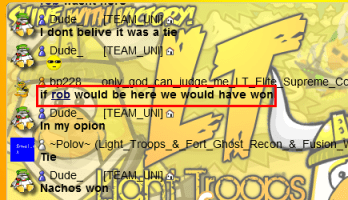• You guys claim you would have done better if Roberto was on. LOL, what an idiotic army. Only cause of one person you’ll do better. You guys really have to learn how to be independent. LT always uses this excuse Oh if Rob/ioio or some other noobish leader was there we would have done better. You never see us blame our losses cause a leader was missing. Really LT, become Independent don’t.