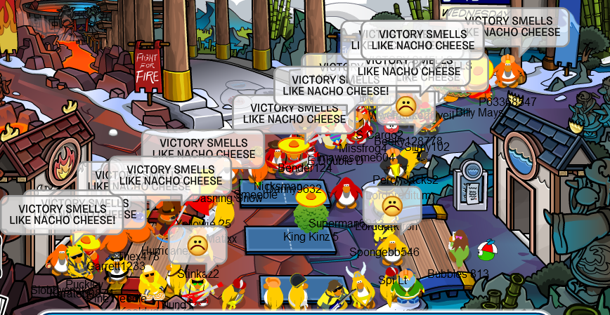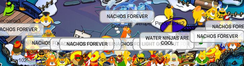 Welcome to the Nachos! We were one of the most powerful and legendary armies in all of Club Penguin. Known for our fun and enjoyable atmosphere, we're always having a good time! Due to Club Penguin shutting down, the army is mostly inactive. However, our older members tend to keep in touch using discord. You can join using the following link.