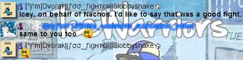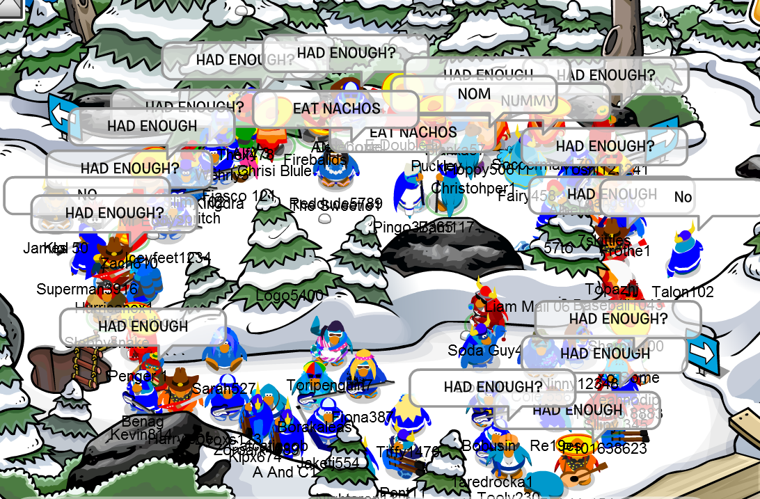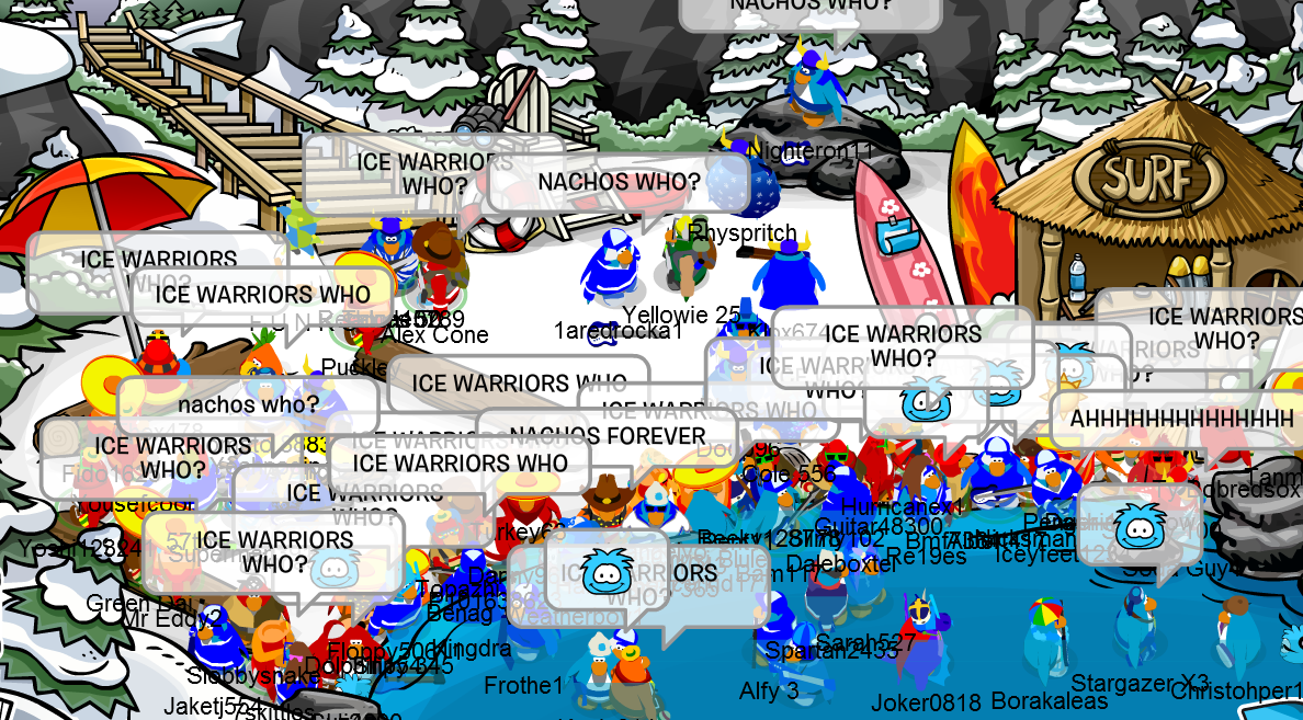 Welcome to the Nachos! We were one of the most powerful and legendary armies in all of Club Penguin. Known for our fun and enjoyable atmosphere, we're always having a good time! Due to Club Penguin shutting down, the army is mostly inactive. However, our older members tend to keep in touch using discord. You can join using the following link.