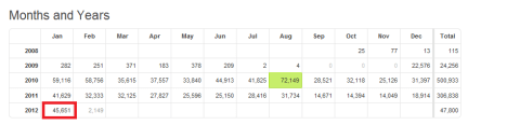 How many hits the site gets is extremely important, it reflects how active the leaders, 2ics, 3ics, advisors etc are. The more posts you make in a day, the more hits you get that day, it’s fairly simple, and I’m extremely happy to tell you that January 2012 is the most hits we’ve had in a month since August 2010, August 2010 also happens to have been the busiest month for this site, with 72149 hits that month. The January that we’ve just had has had 45,651 hits.