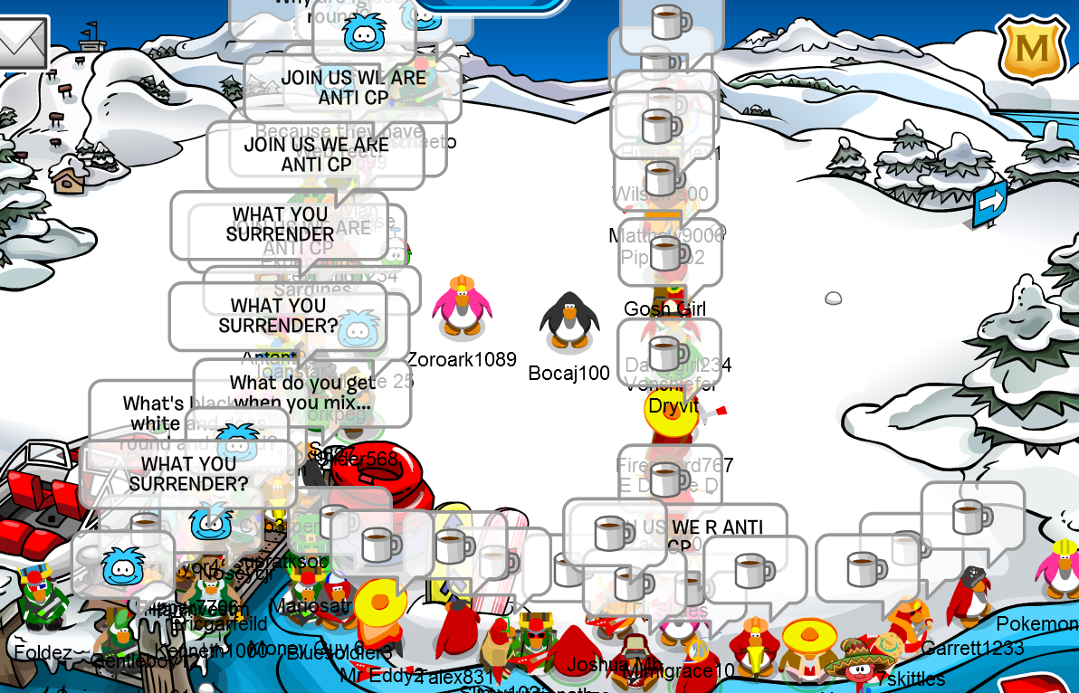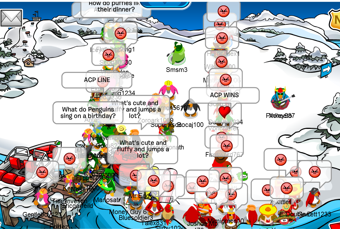Today we took ACP’s capital (Breeze). We battled ACP for 1 hour-long and we dominated every second of the battle. Now I’m getting told that ACP claimed that they won because of Boomer’s post on CPAC. Well guess what, Boomer DOESN’T MAKE THE RULES. Now, CP frozen multiple times and we had to move to Outback. We then dominated ACP on Outback also! ACP didn’t battle us for 20 minutes as they ran to the Dock, thinking that we will follow. ACP as I said, we were invading! ACP then came back to the Snow Forts and battled us. We won the Town, Snow Forts, and Dock. Those were the only places that we battled.