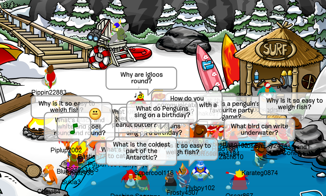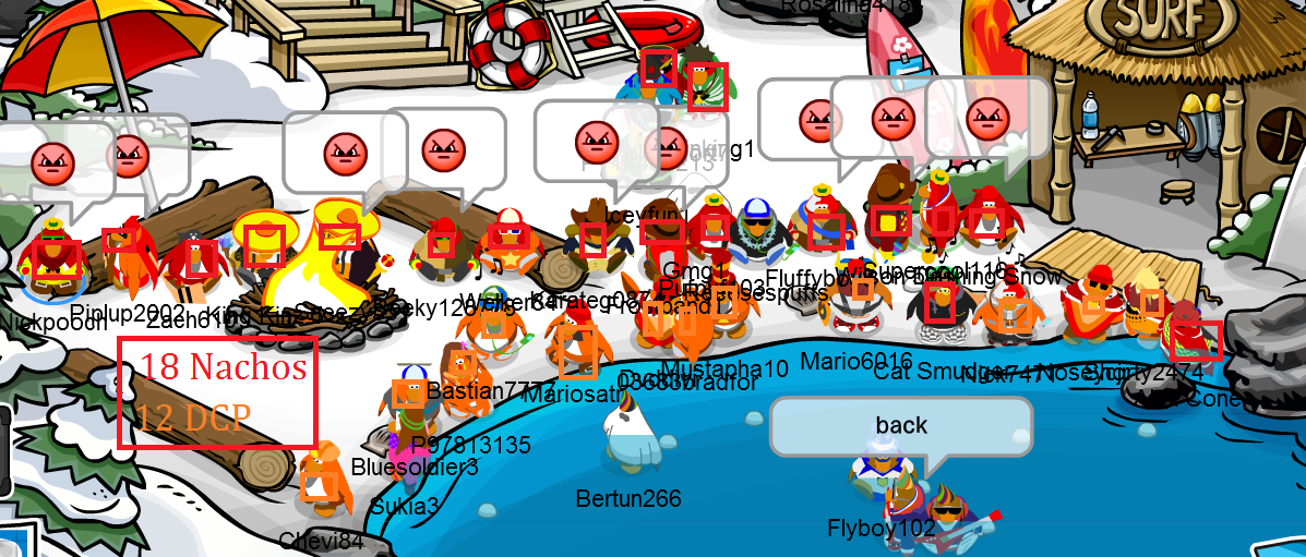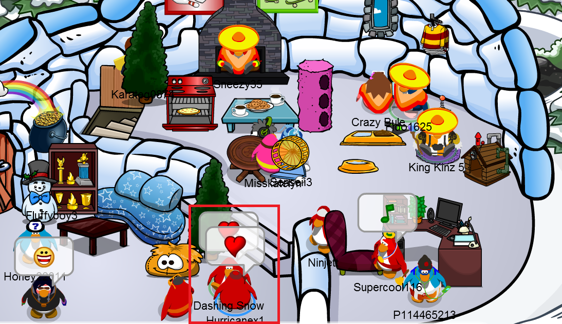 Woah! The penguins are huge. The penguins are huge because Club Penguin added the Puffles’ hat. Due to the puffles’ hat being so big, they had to make the penguins a little bigger in igloos. Nachos look amazing extra big 😀 ! Overall it was a fun and crazy raid.