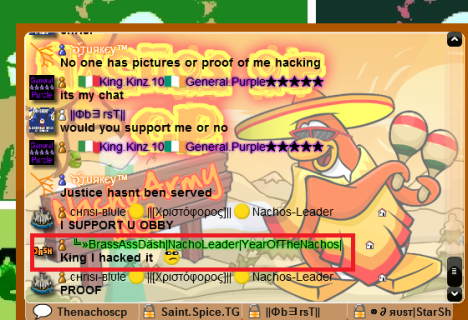Welcome to the Nachos! We were one of the most powerful and legendary armies in all of Club Penguin. Known for our fun and enjoyable atmosphere, we're always having a good time! Due to Club Penguin shutting down, the army is mostly inactive. However, our older members tend to keep in touch using discord. You can join using the following link.