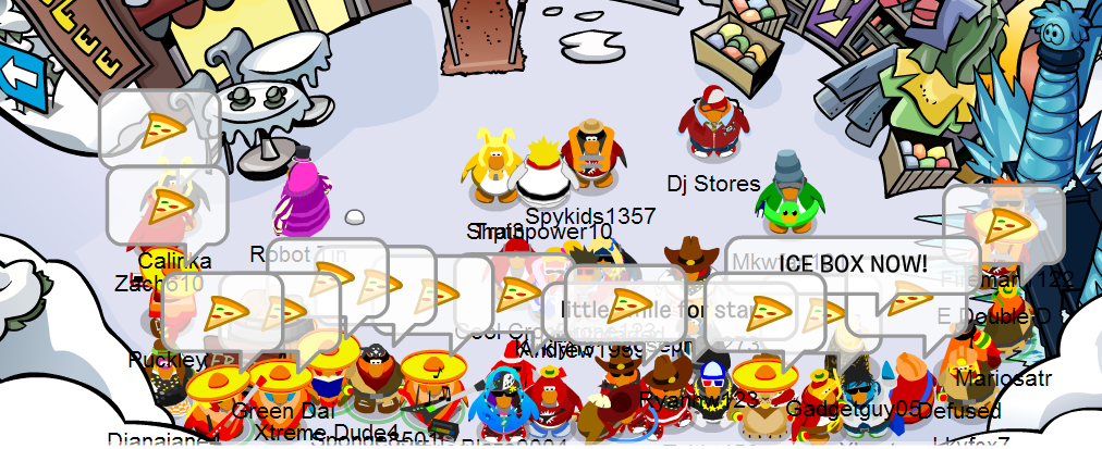 So we logged onto Sleet to face the Pirates, who were a no-show. And I actually think they might be dead :/, although Zak and Coolster are making a new Pirates -which we’ll like. Anyway, we maxed 29 at this event, but then lost our size when there was confusion to which room we were in, note to self, Sleet dock is bad, unless you’re a rare penguin/Disney hater, which I am (wary).