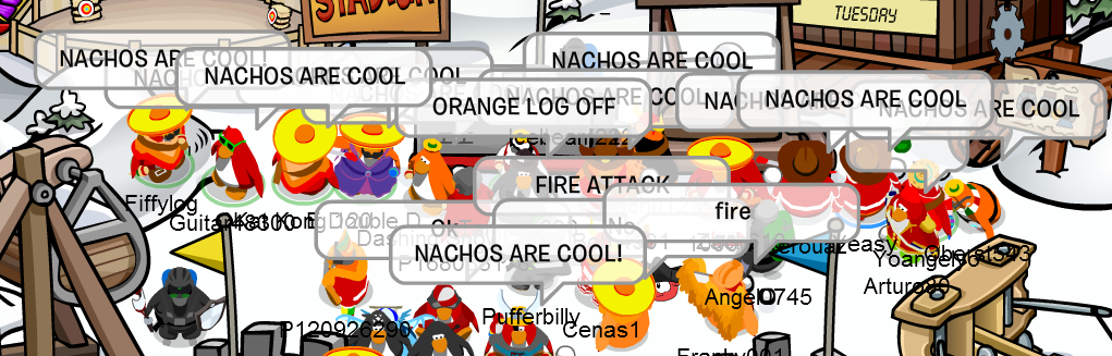Today we faced the SWAT of Club Penguin (or should I say trackcp) on our most historical server, Blizzard. Even with SWAT having recruits coming in from Riffy and Trackcp during the battle, Nachos still managed to hold our own on Blizzard. Both armies had good sizes varying from one army to the other, both of us had some good charges and some bad ones, overall we were pretty evenly matched. In this situation I can honestly call this battle a tie even though SWAT is going claim victory. In an event of a tie I guess the server belongs to 50% of one army and 50% of the other, so SWAT owns 50% of Blizzard.