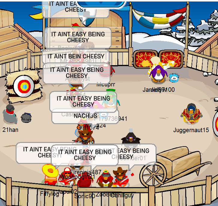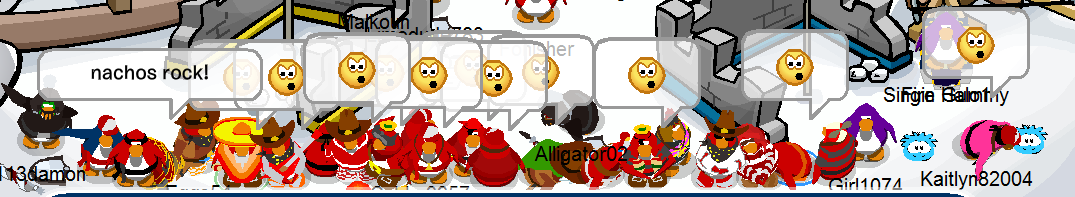 Welcome to the Nachos! We were one of the most powerful and legendary armies in all of Club Penguin. Known for our fun and enjoyable atmosphere, we're always having a good time! Due to Club Penguin shutting down, the army is mostly inactive. However, our older members tend to keep in touch using discord. You can join using the following link.