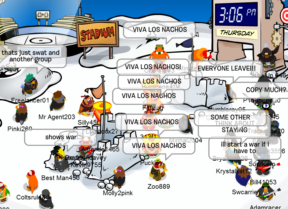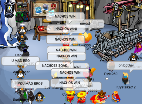 Welcome to the Nachos! We were one of the most powerful and legendary armies in all of Club Penguin. Known for our fun and enjoyable atmosphere, we're always having a good time! Due to Club Penguin shutting down, the army is mostly inactive. However, our older members tend to keep in touch using discord. You can join using the following link.