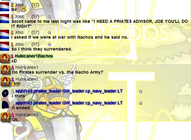 As of May 31st, 2012 the Pirates have surrender the war. The Nachos are victorious and we keep all of the servers we won. Great job Nachos.