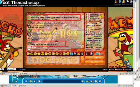 Welcome to the Nachos! We were one of the most powerful and legendary armies in all of Club Penguin. Known for our fun and enjoyable atmosphere, we're always having a good time! Due to Club Penguin shutting down, the army is mostly inactive. However, our older members tend to keep in touch using discord. You can join using the following link.
