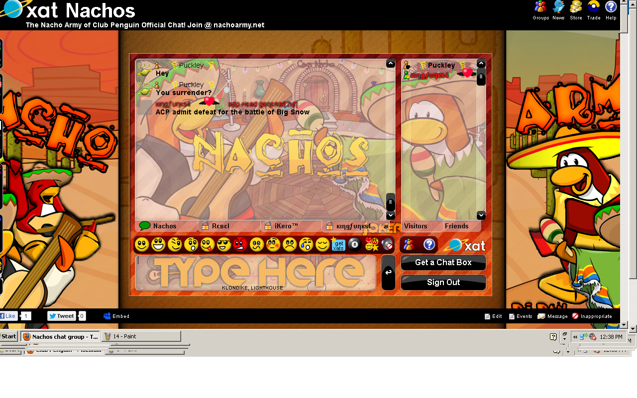 Welcome to the Nachos! We were one of the most powerful and legendary armies in all of Club Penguin. Known for our fun and enjoyable atmosphere, we're always having a good time! Due to Club Penguin shutting down, the army is mostly inactive. However, our older members tend to keep in touch using discord. You can join using the following link.