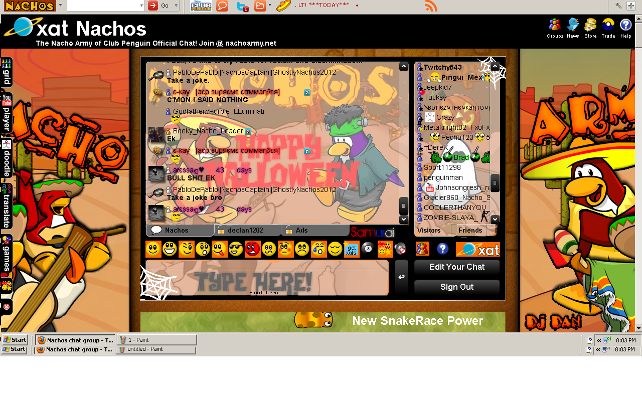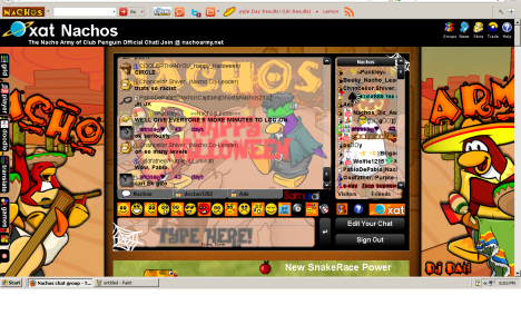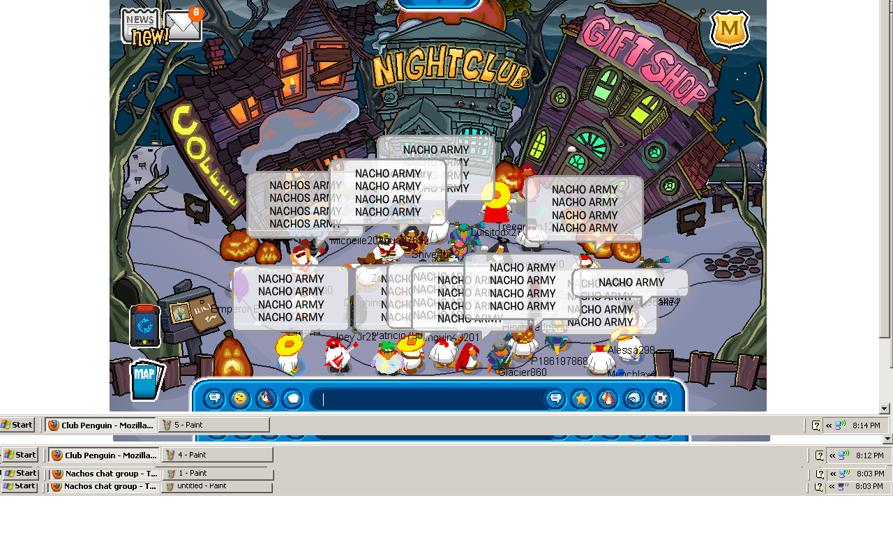 Welcome to the Nachos! We were one of the most powerful and legendary armies in all of Club Penguin. Known for our fun and enjoyable atmosphere, we're always having a good time! Due to Club Penguin shutting down, the army is mostly inactive. However, our older members tend to keep in touch using discord. You can join using the following link.