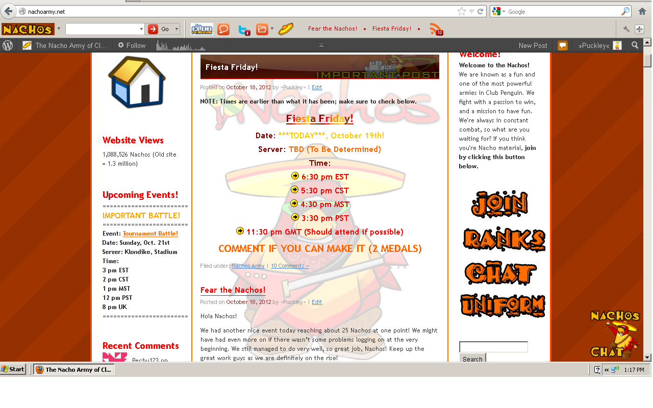 We have created a comprehensive Toolbar for all of our troops to use! The purpose behind the Toolbar is simple: to allow you to keep up-to-date on all of the latest happenings in the Nachos as well as in Club Penguin Armies. Here’s what’s included: