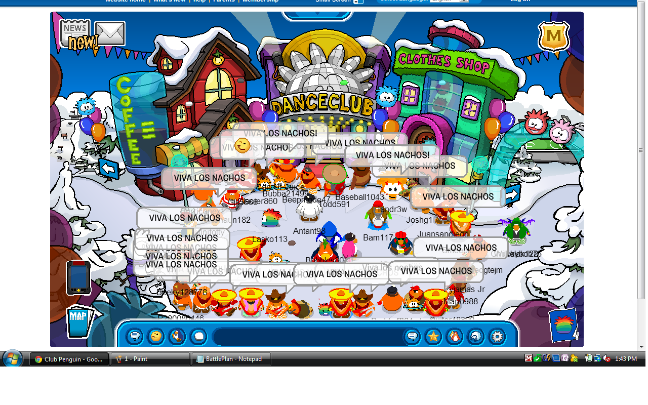 6. I MADE ITT!!!!!!!!!!!!!!!!!!!!!!!!!!!!!!!!!!!!!!!!!!!!!!!!!!!!!!!!!!!!!!! WHAT A BATTLE! WHEN WE MOVED TO THE BURG,IT WAS FULL AND I COULNT GET IN! XD BUT I KEPT TRYING AND I GOT IN! AND I LEARNED A LITTLE MEXICAN! VIVA LOS NACHOS!