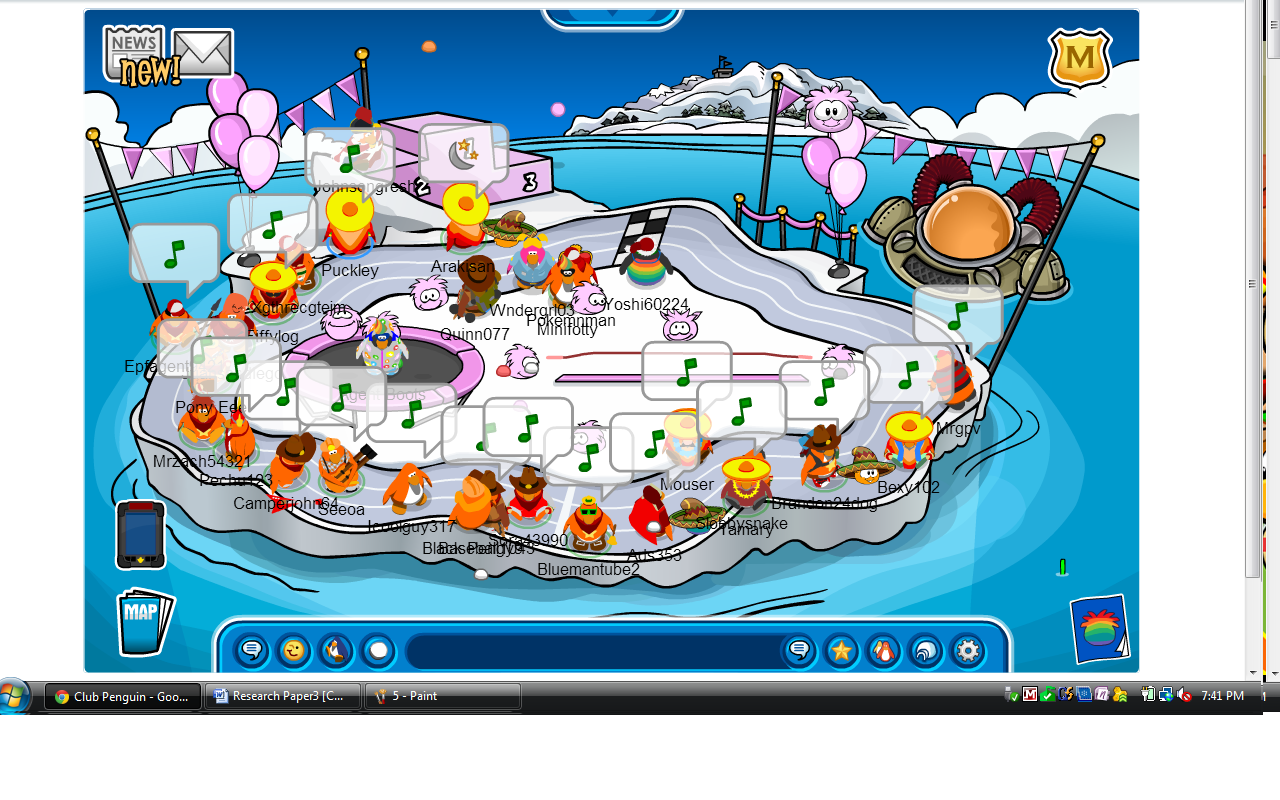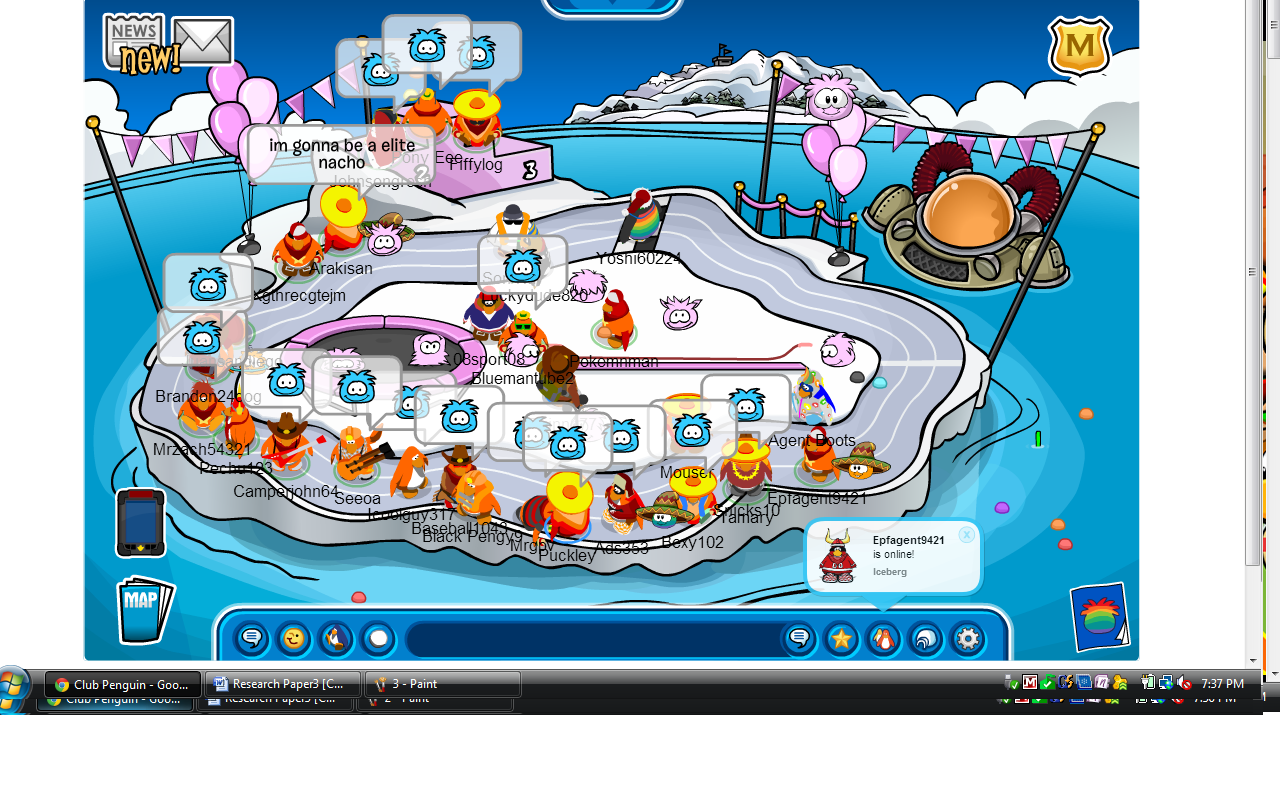 Today we had a pretty “awesome” event on the server Sleet. Overall our tactics were pretty good and our size was not bad also. We averaged about 20-25 and maxed 30 :O. We had a bit of trouble with the Club Penguin rooms because of the puffle party going on, but found our was around that. Thanks to who ever came to the awesome event!