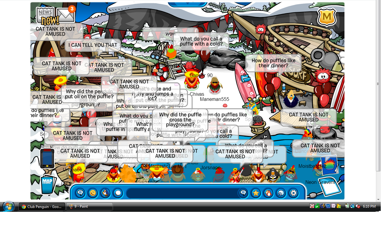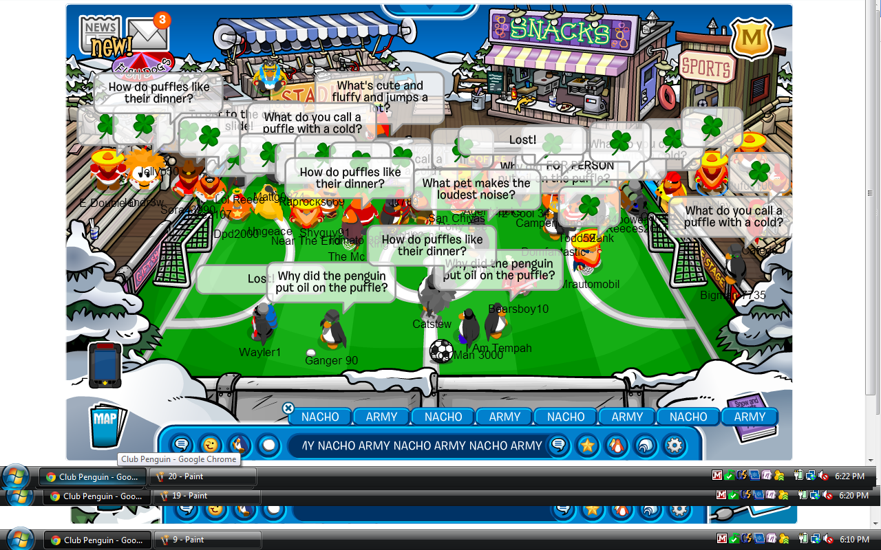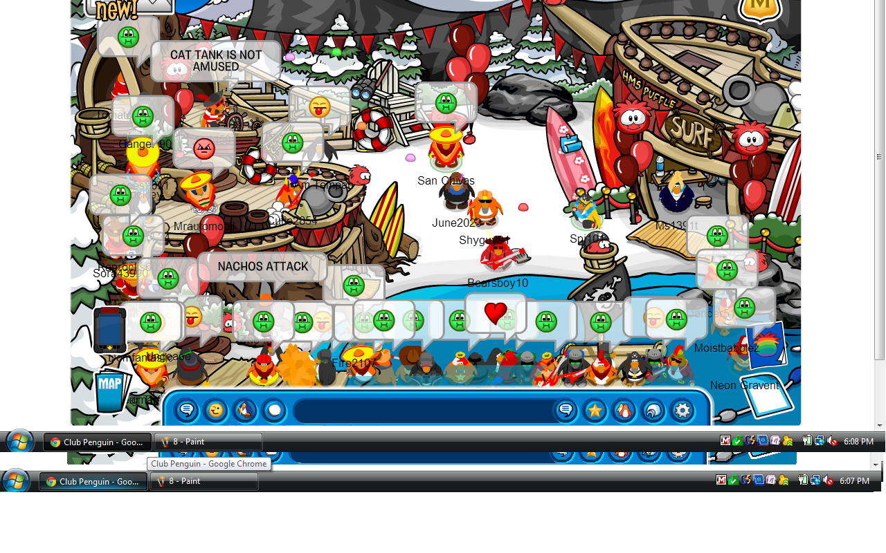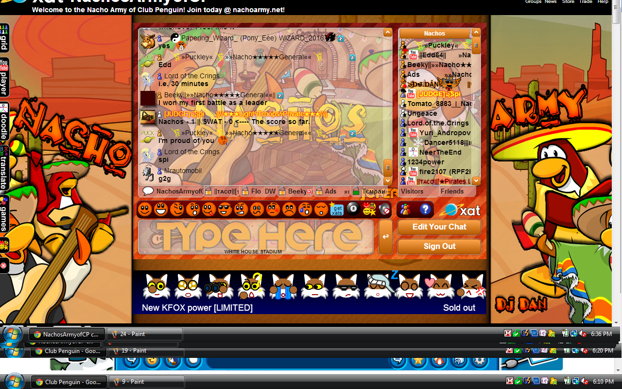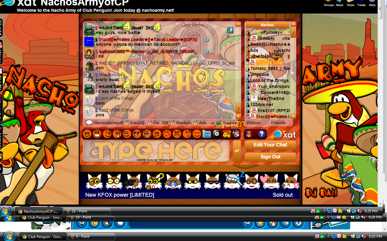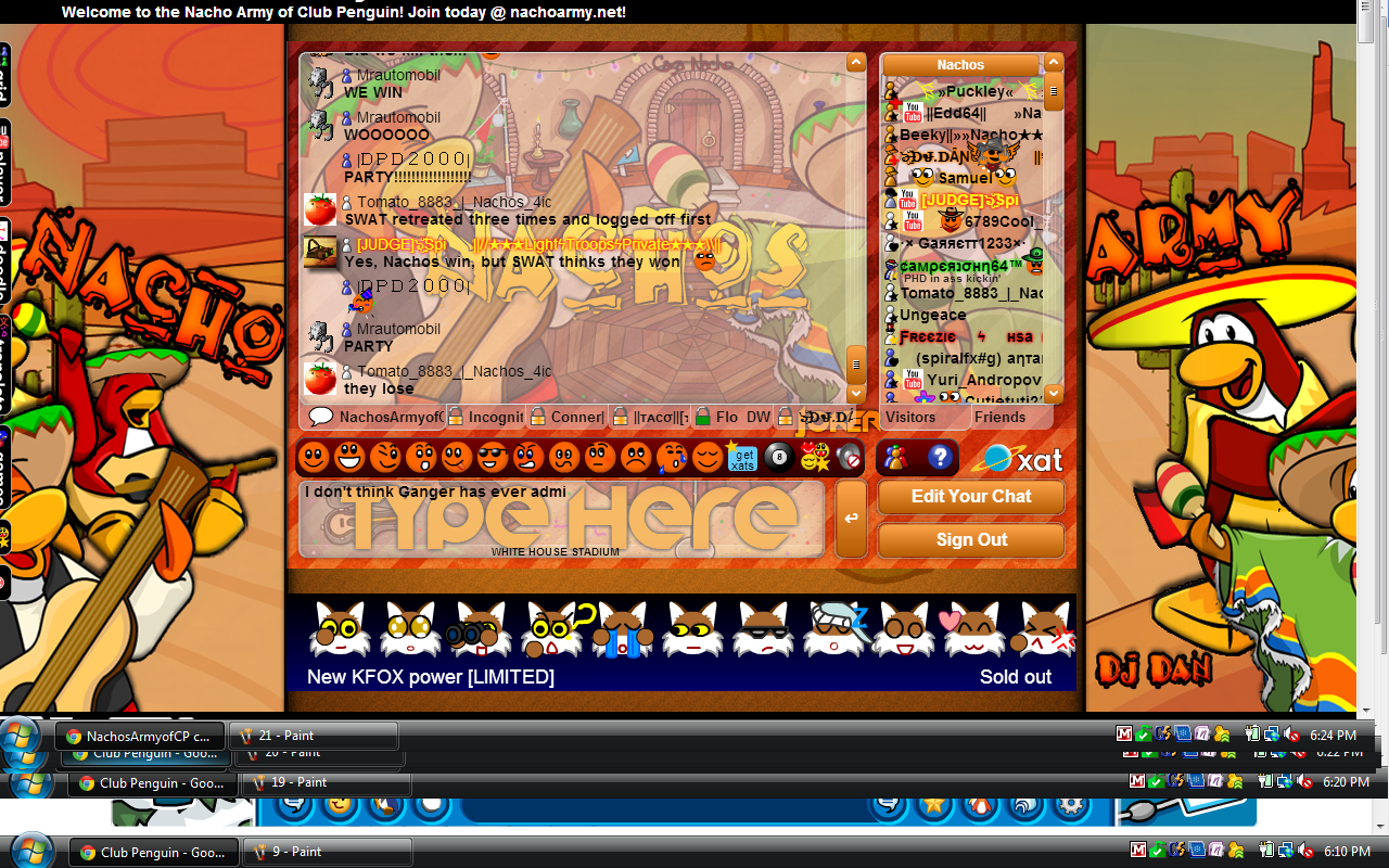 Today, we marched onto our home field server, White House. I must say, I’m proud of you. This was my first defense and war as your leader, and we got a bit above our goal with a little less than 24 hours notice. We maxed 31, averaged 25 on Club Penguin. During the beginning, our troops were beginning to have doubt, but then, we charged. As soon as we charged, SWAT retreated to the Cove and lost around 15 of their soldiers. We followed quickly, money bombed them down, sat on their line, and I think we ate a little too much beans last night because those toots were smelly and loud. Getting back on topic here, we’re one step closer to promotions, as you remember our little deal. All we have to do is win two more week day battles. So, If we win those two next battles, then get 55+ on Fjord, and win our server, we will give our very early promotions as we will have been undefeated defending our nation. I’m proud of you guys. Heres some pictures of Swat 2ic admitting defeat, and the Judge saying “Nachos Win!”