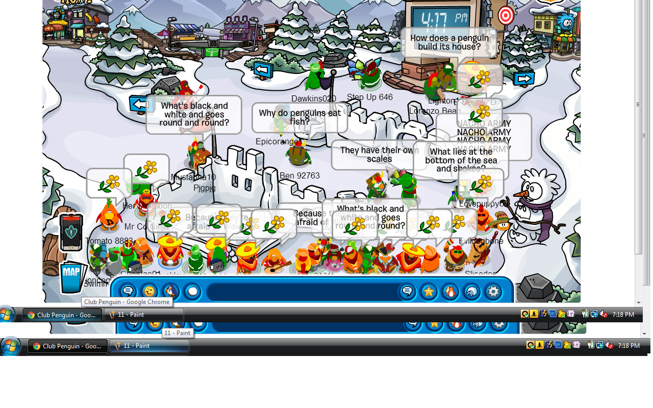 Today, we began our second campaign against the Army of Club Penguin!  As you know, our first campaign was a major success, and we picked right back up where we left off today!  The ACP asked for war as they intentionally broke our treaty, so we gave them what they asked for!  We were able to successfully push back the smaller force of the ACP to conquer Klondike as ours!  We arrived onto the scene with great size to start with 30 Nachos at our best following with a consistent 25+ throughout the skirmish.  Our tactics were something special today as we had multiple perfect ones during the occasion. Overall, excellent job, Nachos!  Let’s keep this up too!  I hope everyone had a great time today! 😀