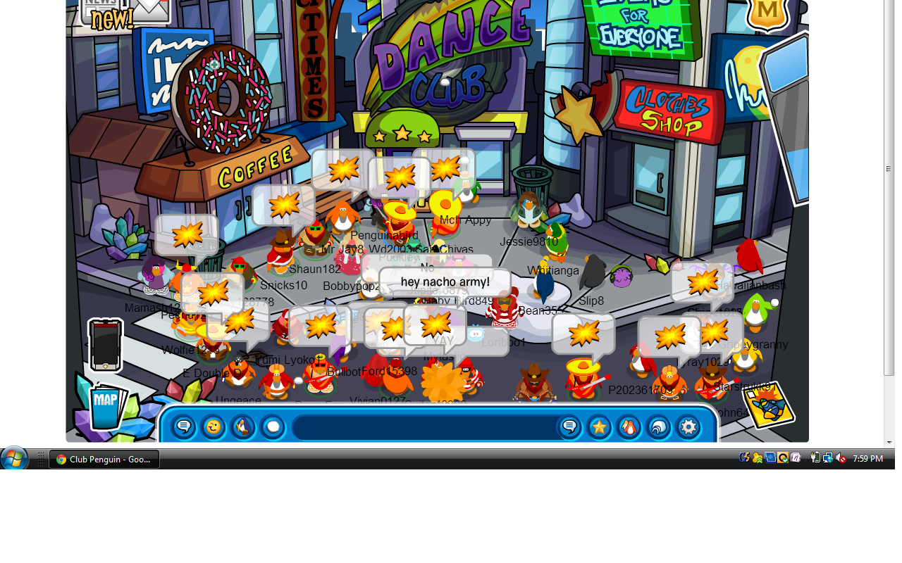 Welcome to the Nachos! We were one of the most powerful and legendary armies in all of Club Penguin. Known for our fun and enjoyable atmosphere, we're always having a good time! Due to Club Penguin shutting down, the army is mostly inactive. However, our older members tend to keep in touch using discord. You can join using the following link.