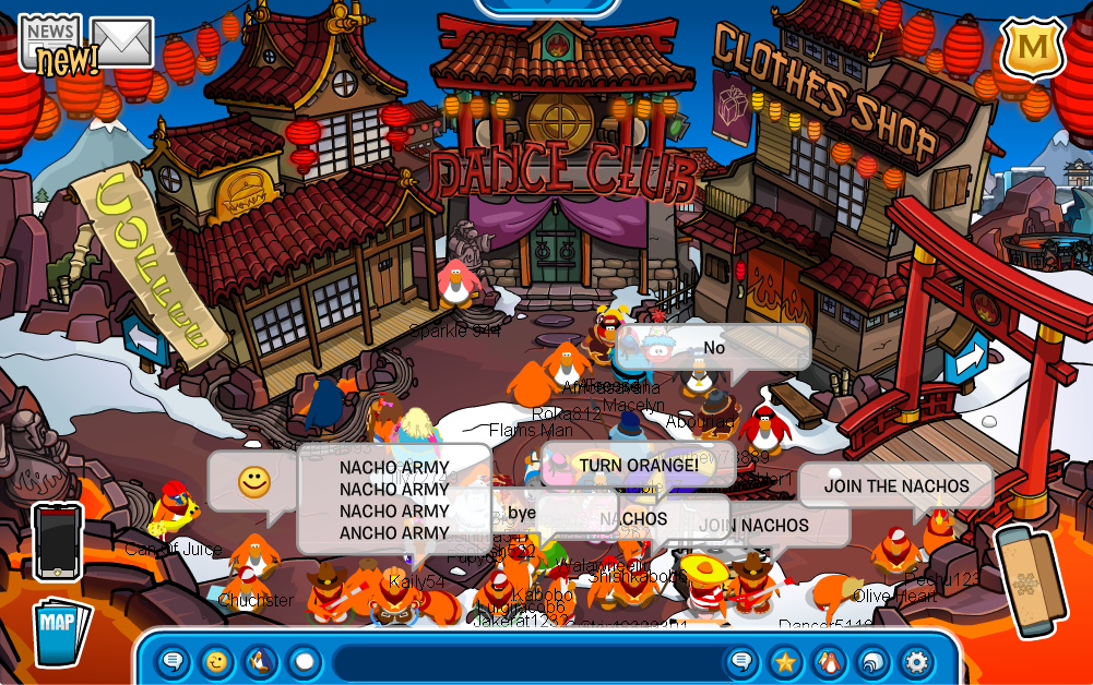 Welcome to the Nachos! We were one of the most powerful and legendary armies in all of Club Penguin. Known for our fun and enjoyable atmosphere, we're always having a good time! Due to Club Penguin shutting down, the army is mostly inactive. However, our older members tend to keep in touch using discord. You can join using the following link.