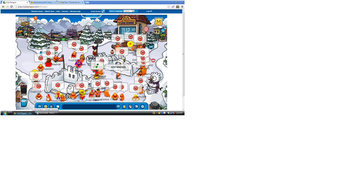 Welcome to the Nachos! We were one of the most powerful and legendary armies in all of Club Penguin. Known for our fun and enjoyable atmosphere, we're always having a good time! Due to Club Penguin shutting down, the army is mostly inactive. However, our older members tend to keep in touch using discord. You can join using the following link.
