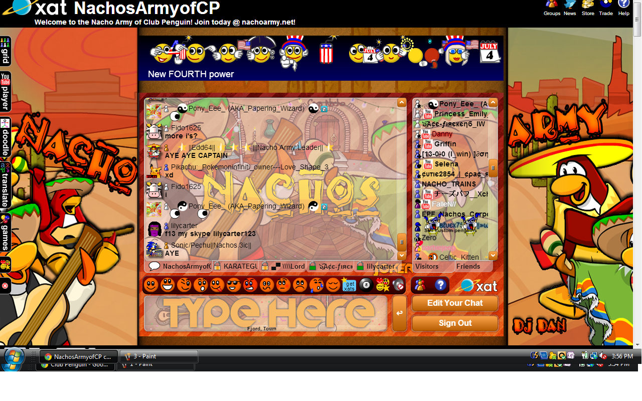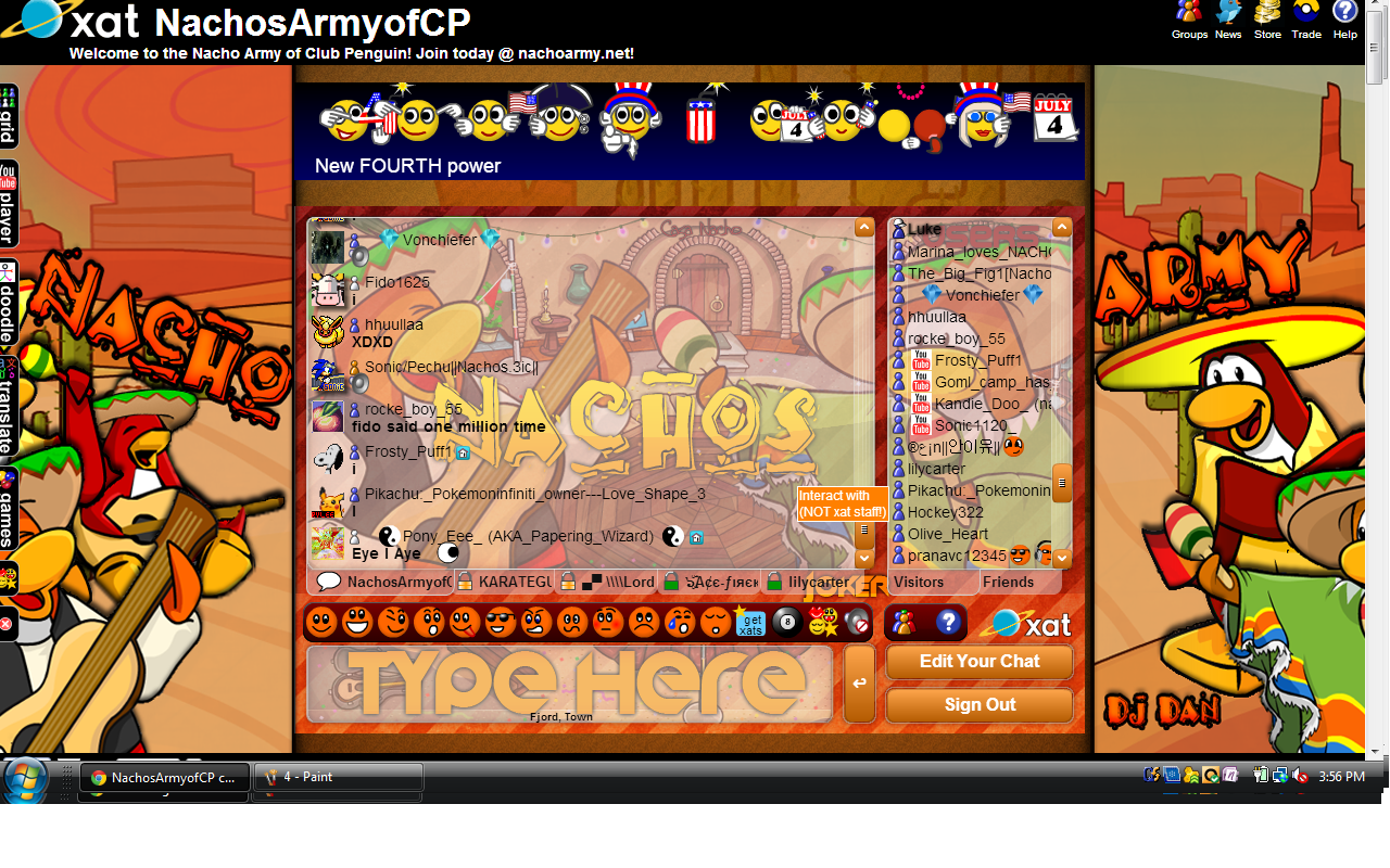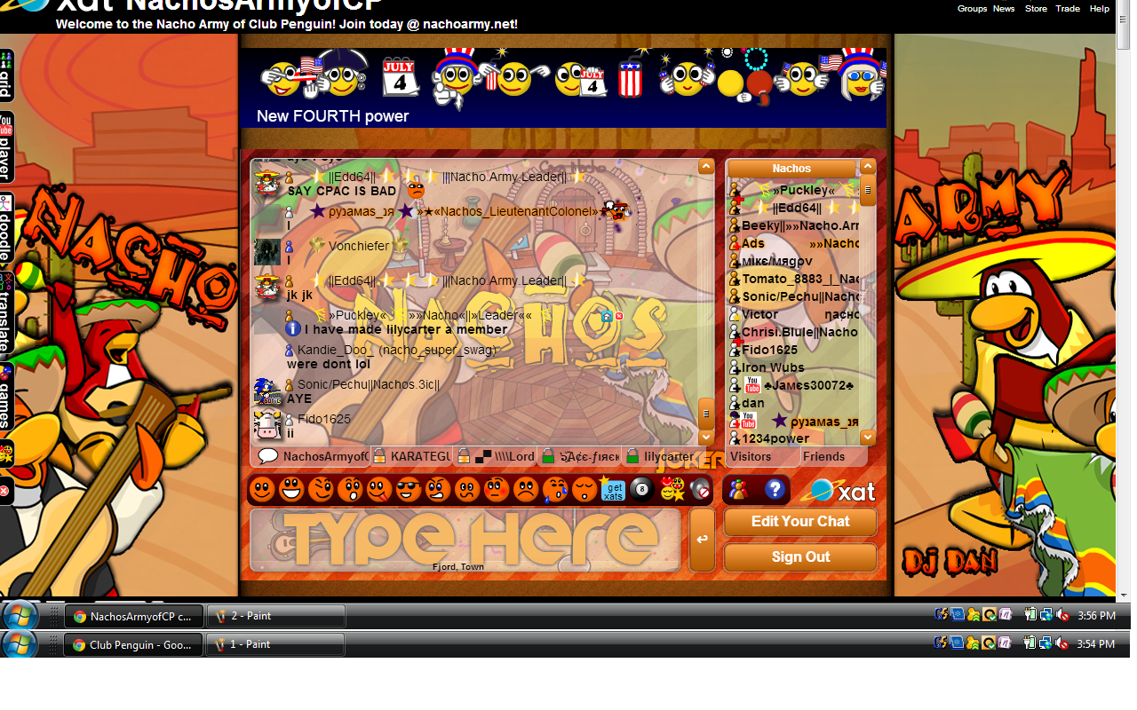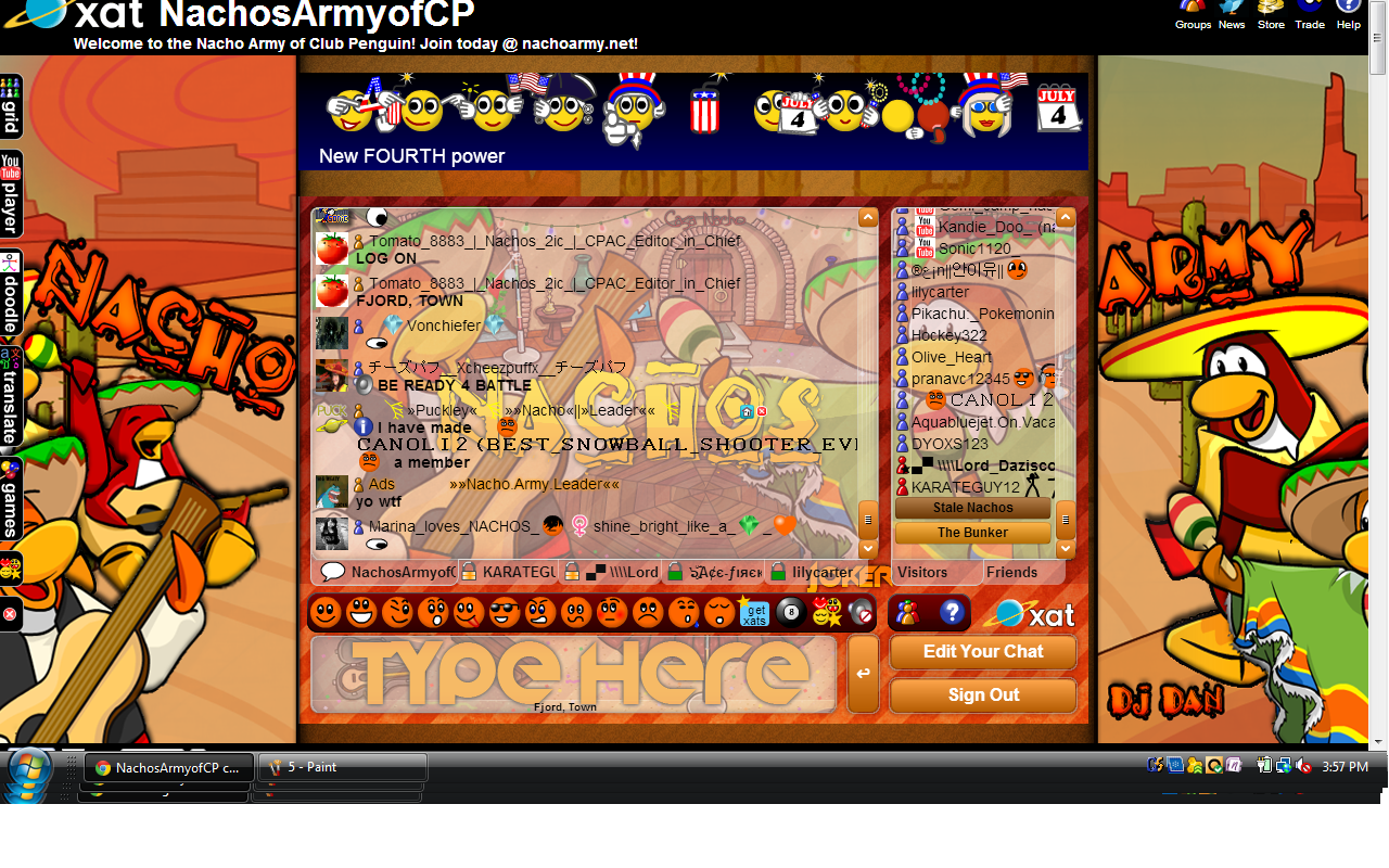 Welcome to the Nachos! We were one of the most powerful and legendary armies in all of Club Penguin. Known for our fun and enjoyable atmosphere, we're always having a good time! Due to Club Penguin shutting down, the army is mostly inactive. However, our older members tend to keep in touch using discord. You can join using the following link.