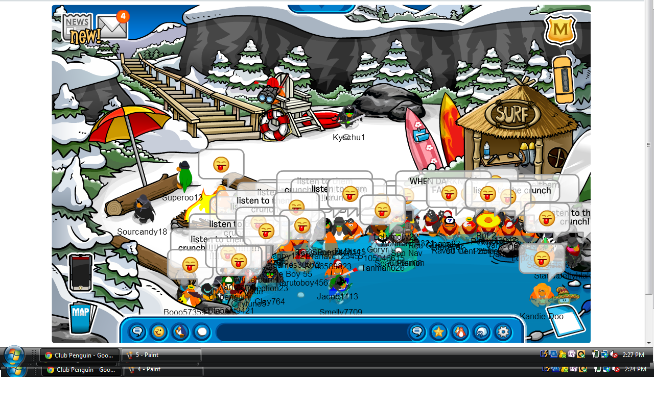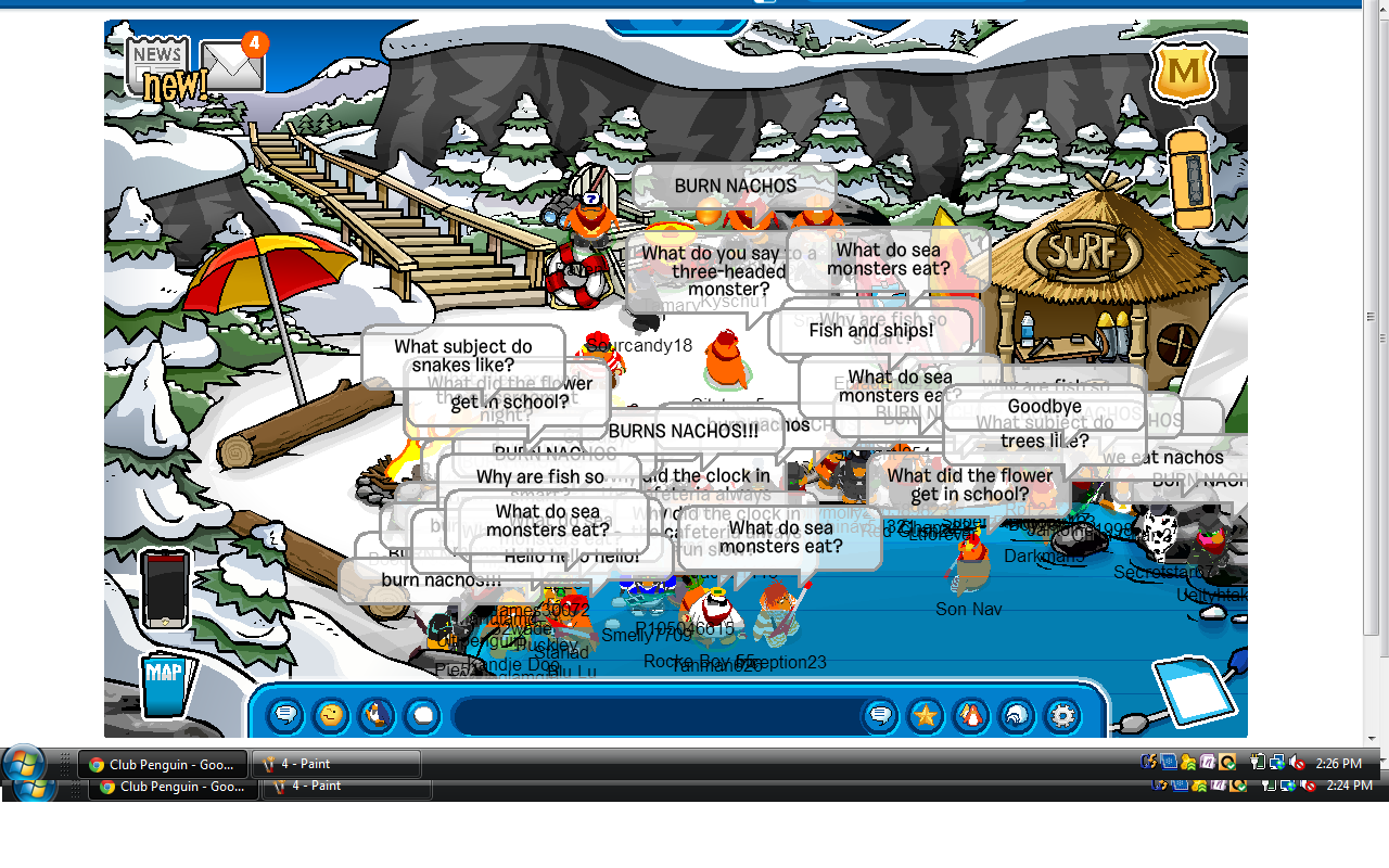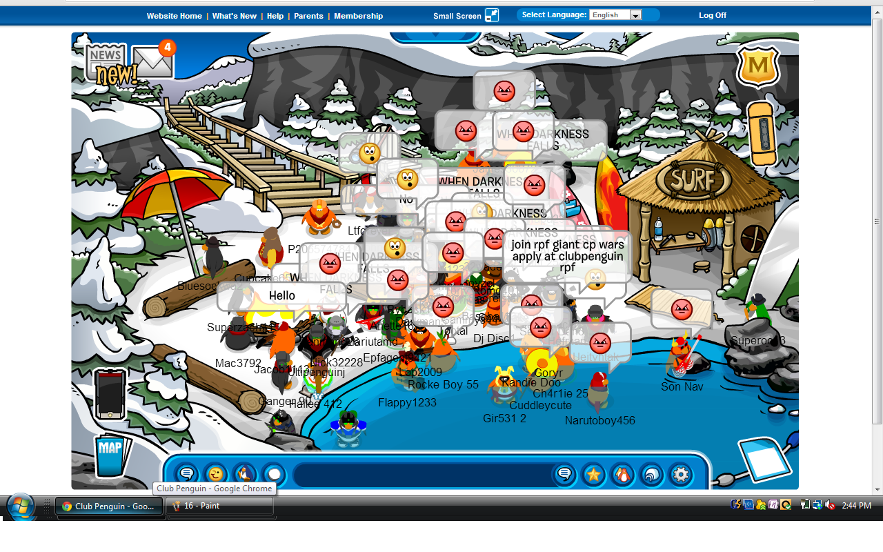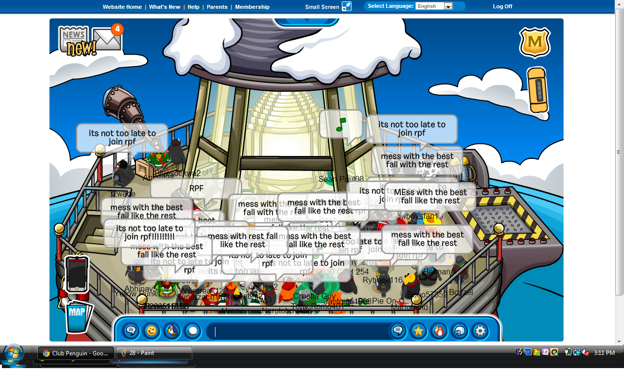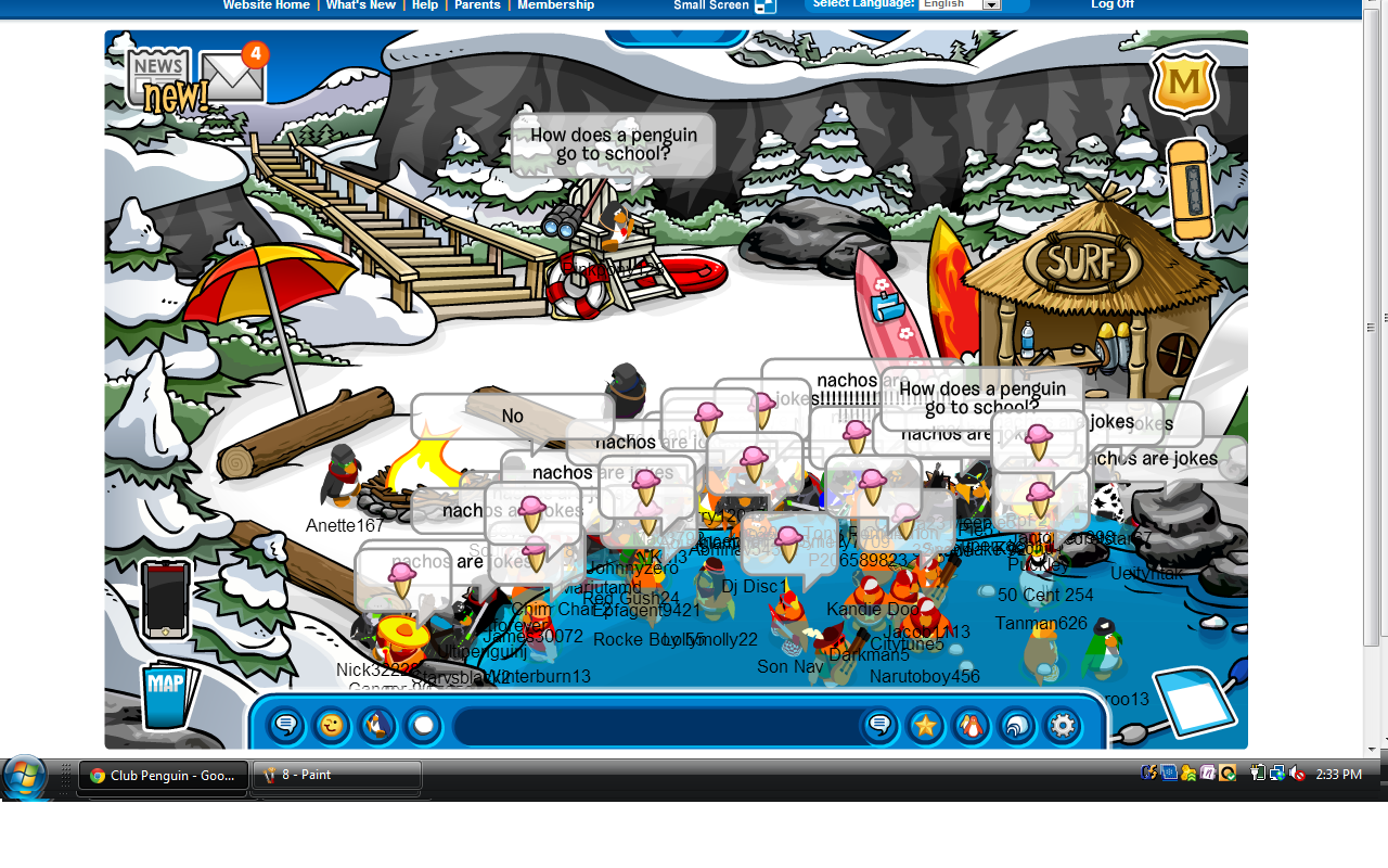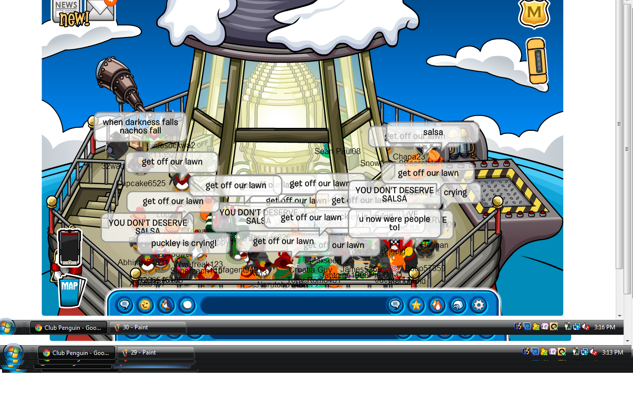 Whoa, that was a long battle!  We began on Klondike where our invasion of Arctic was taking place; however, the RPF refused to defend their last server remaining Arctic!  We remained on Klondike (for Arctic) for about 15 minutes and since no RPF showed up, we easily conquered the server to take away RPF’s last remaining piece of territory.  RPF insisted on invading White House, so we eventually made our way there to fight them.  We gathered in the Mine to start with awesome sizes of up to 40-45 Nachos compared to the RPF’s say 30 troops if that.  After a bit of waiting, we forced our way in to fight the RPF, and we easily crushed them then sent them running from room to room across Club Penguin!  Another solid day, Nachos!  Way to go! 😀