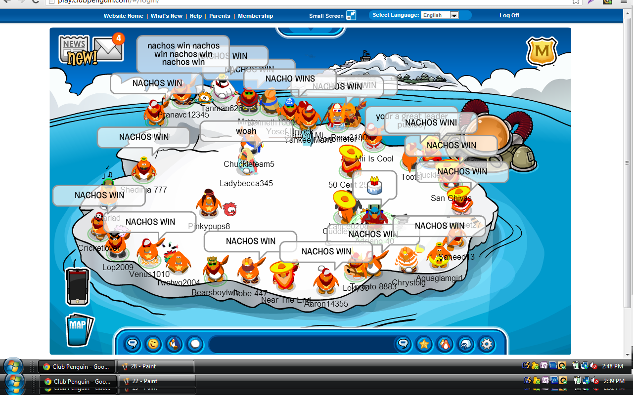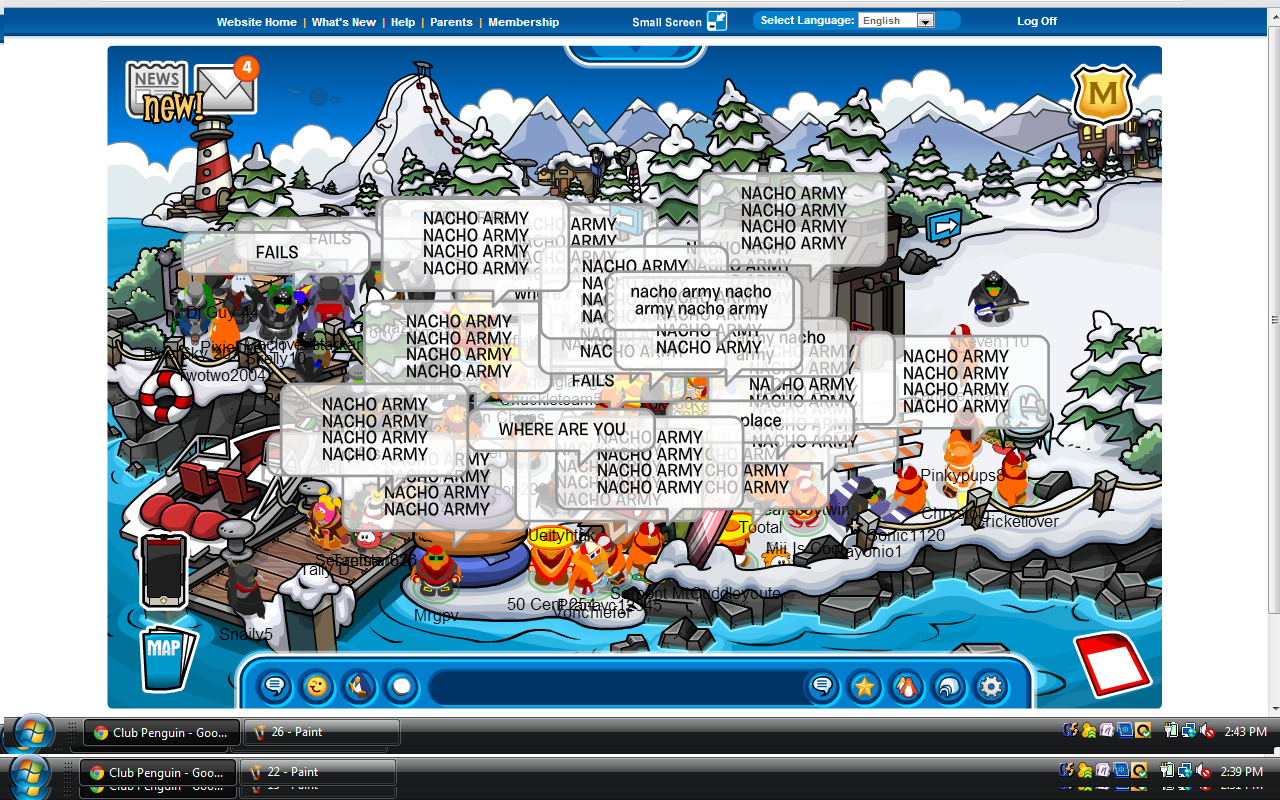 Welcome to the Nachos! We were one of the most powerful and legendary armies in all of Club Penguin. Known for our fun and enjoyable atmosphere, we're always having a good time! Due to Club Penguin shutting down, the army is mostly inactive. However, our older members tend to keep in touch using discord. You can join using the following link.