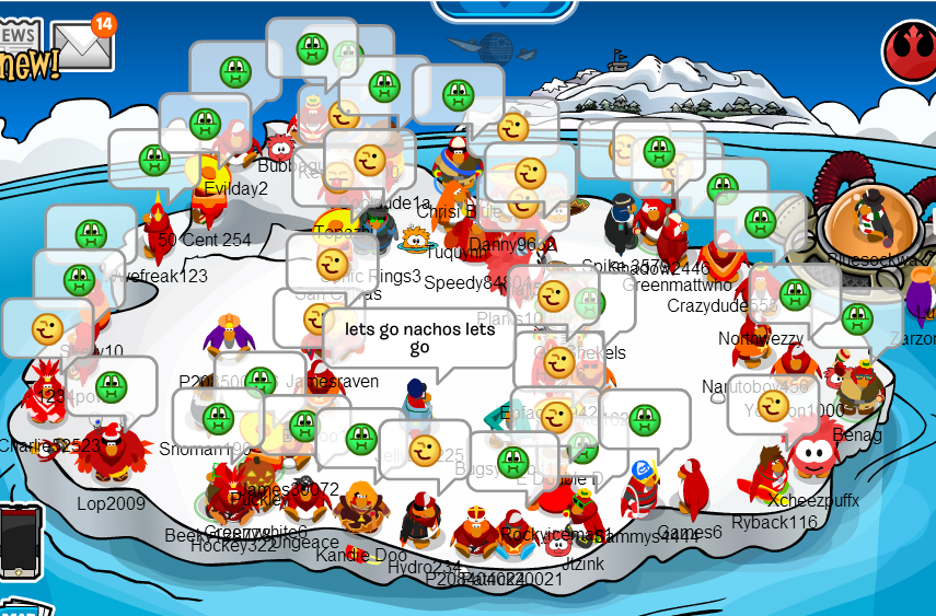 Welcome to the Nachos! We were one of the most powerful and legendary armies in all of Club Penguin. Known for our fun and enjoyable atmosphere, we're always having a good time! Due to Club Penguin shutting down, the army is mostly inactive. However, our older members tend to keep in touch using discord. You can join using the following link.