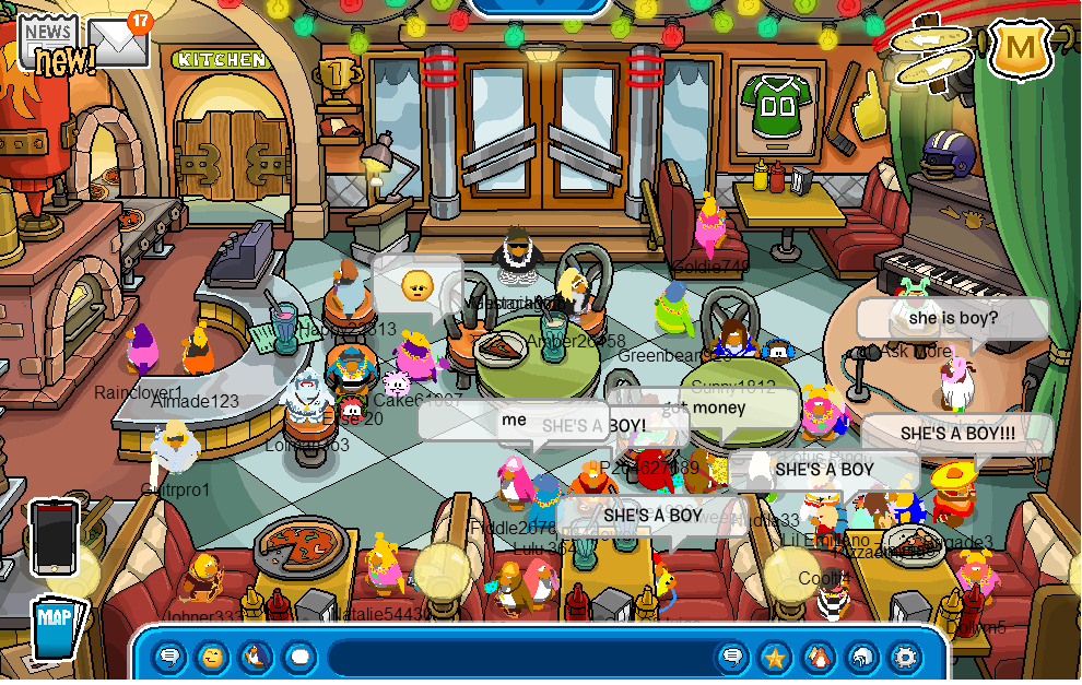 We tried to do a room change and lots of people lagged out, so those who were still online decided to go and charge the pizza parlour and troll some pookies!
