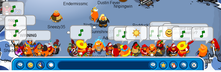 Today, we faced the Redemption Force in the first round of the Champions Cup 2. 10 minutes before the battle, we started experiencing chat difficulties, along with other xat chats. 5 minutes into the event, we had almost 3 full chats, totaling to around 40 people. Due to chat difficulties, only about 20 could log in to Club Penguin and keep up with the event. We ended up tying, but we would’ve won if it wasn’t for xat glitching.